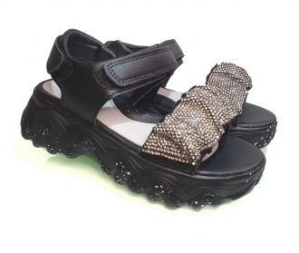 - Верхняя часть босоножек выполнена из качественной эко кожи черного цвета, что придает обуви элегантный и современный вид. Черный цвет универсален и легко сочетается с различными нарядами, делая босоножки подходящими для любого случая.
