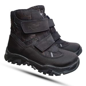 Верхняя часть ботинок выполнена из водоотталкивающей ткани, дополненной прочной замшей ну бук и высококачественной тканью CORDURA, известной своей износостойкостью и стойкостью к разрывам. Водоотталкивающая пропитка обеспечивает защиту от снега и дождя, а ну бук добавляет изделию привлекательный внешний вид и приятные тактильные ощущения. В таких ботинках ноги ребенка будут в тепле и сухости даже в самые снежные зимние дни.