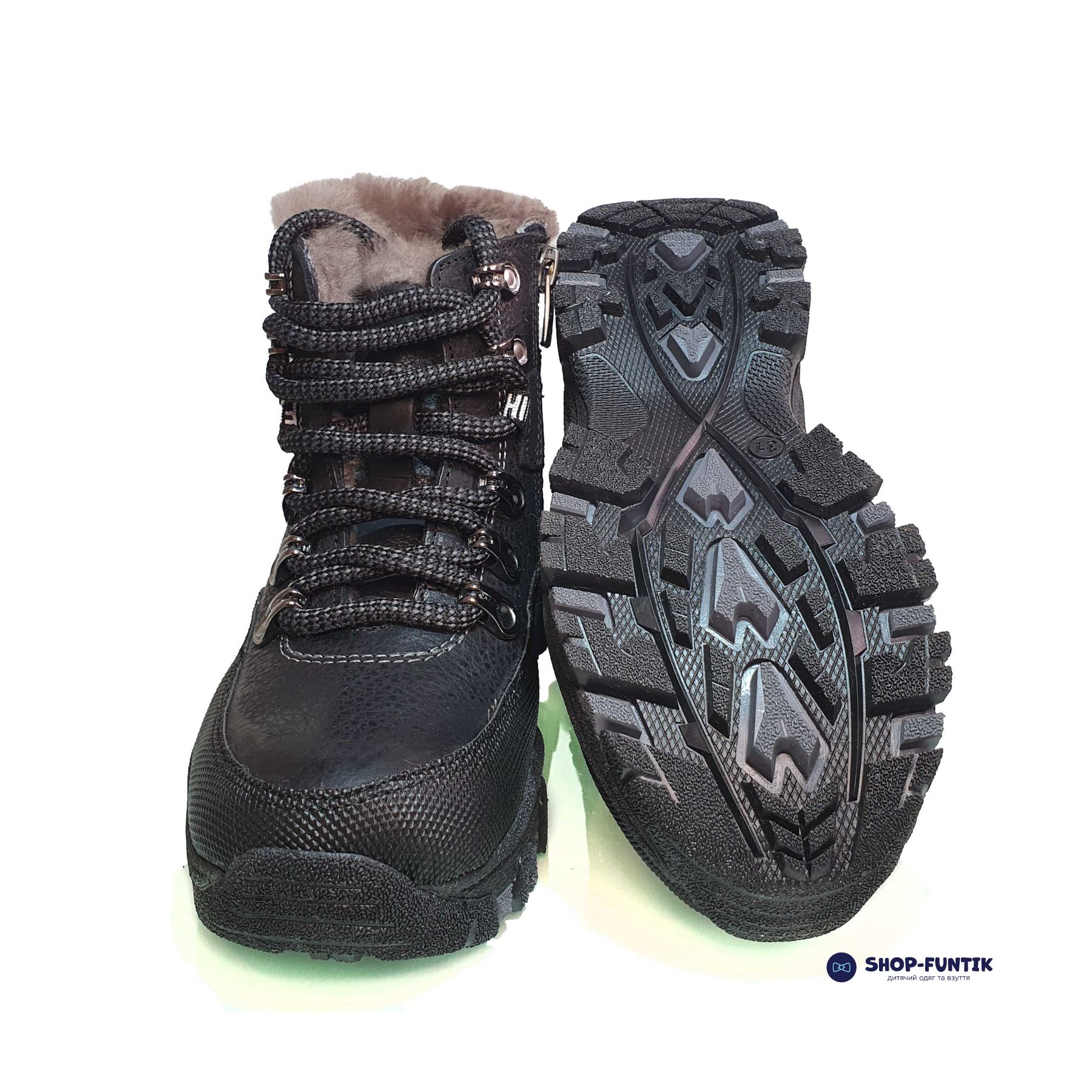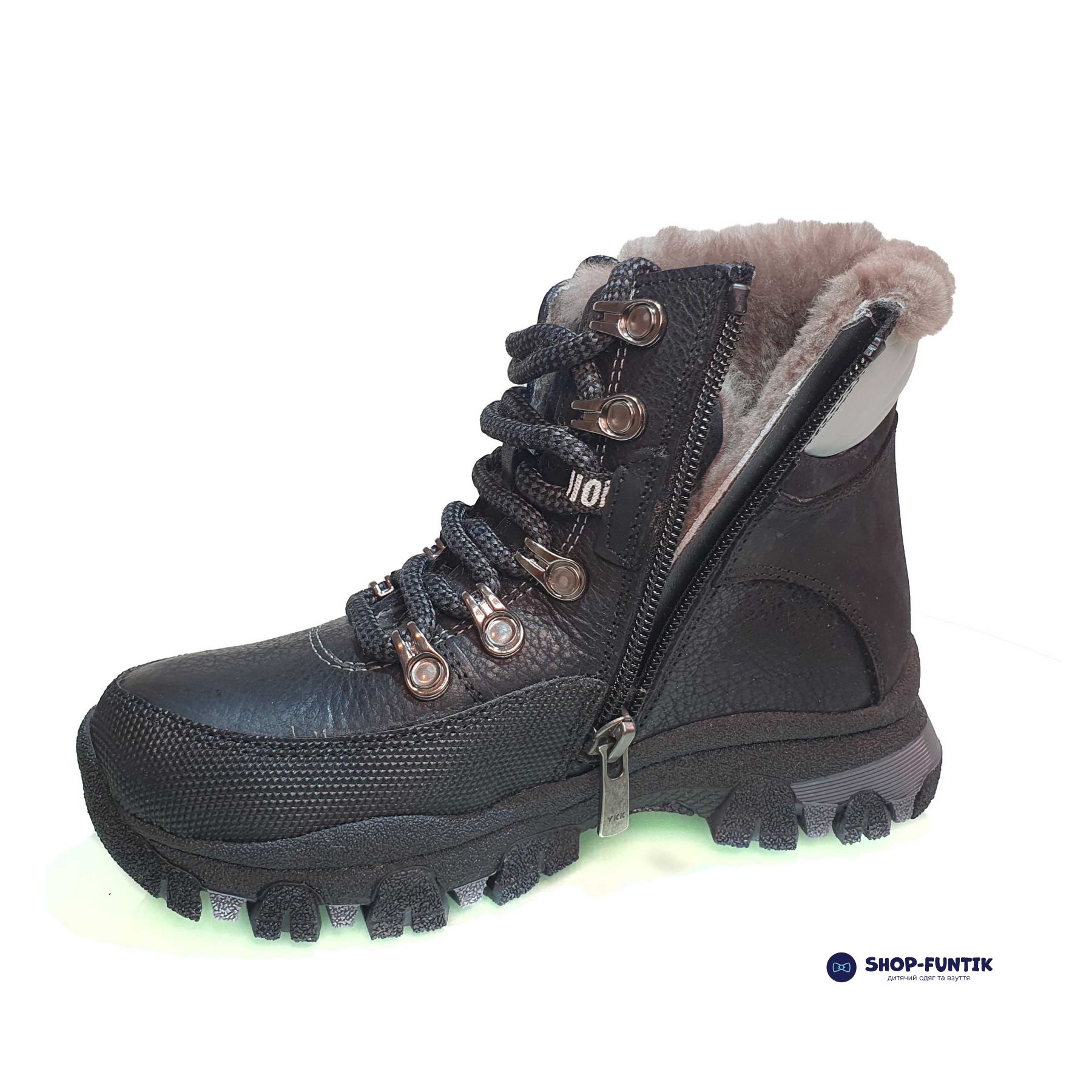 - Внутри: натуральный мех, который обеспечивает отличное тепло и комфорт в холодную погоду, сохраняя ноги вашего ребенка сухими и теплыми.