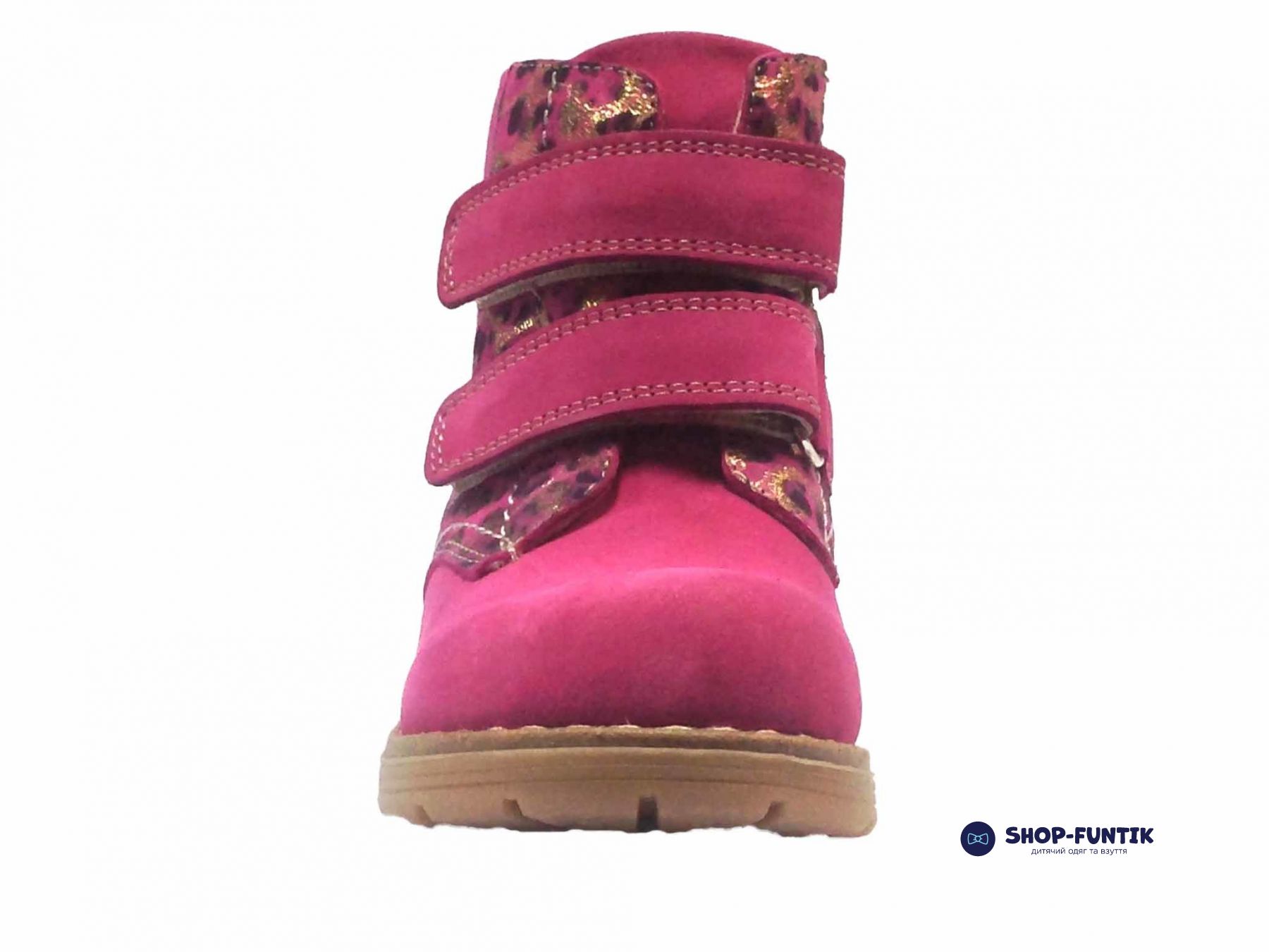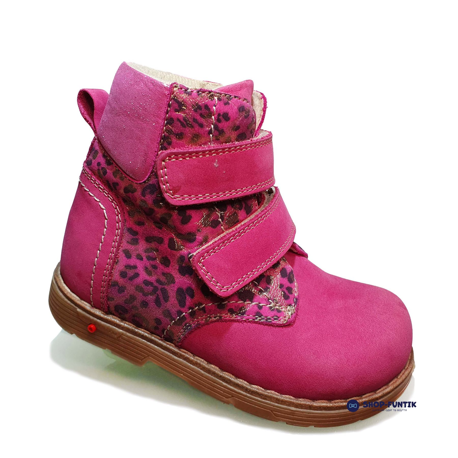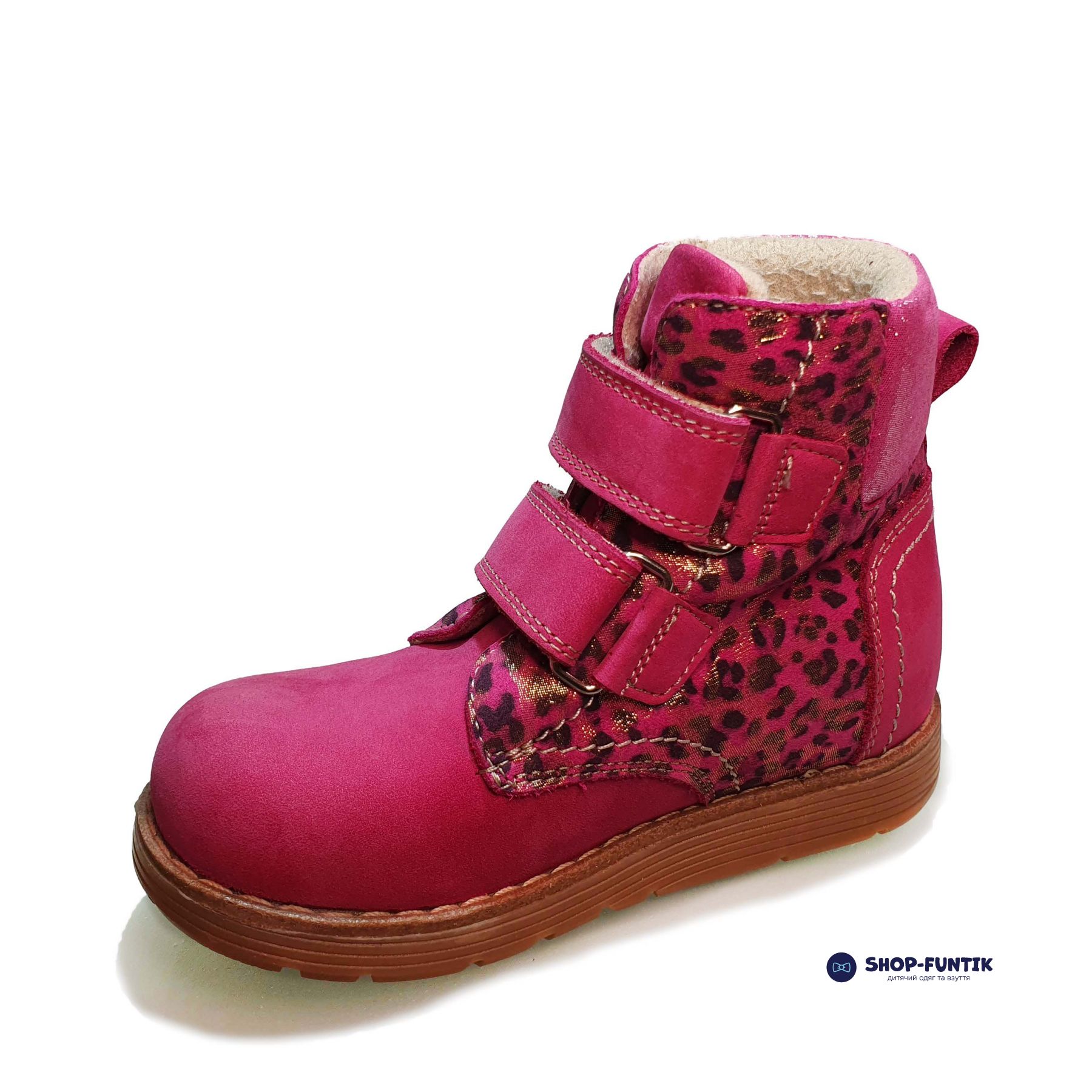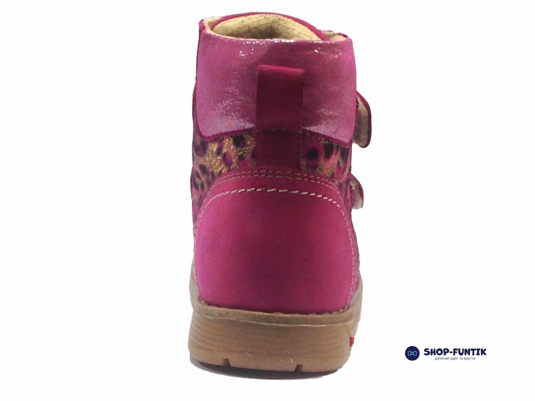 Верх ботинок выполнен из натурального нубука, который придаёт обуви мягкость и долговечность, а также обладает хорошими дышащими свойствами. Розовый цвет ботинок делает их яркими и привлекательными, а кожаная вставка с анималистическим принтом добавляет оригинальности и выделяет эту модель среди других. Этот стильный акцент подчёркивает индивидуальность и привносит элемент моды в детский гардероб.