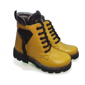 Ботинки Minicolor – первоклассная обувь высочайшего качества. Модель горчичного цвета, дополнена черной шнуровкой и подвеской, застежка – на молнии. Стиль Casual уместен в любой ситуации, а рабочие свойства позволяют носить как в сухую, так и дождливую погоду.
