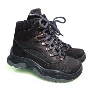 Дизайн нейтральный. За натуральной кожей черного цвета легко ухаживать, достаточно просто использовать влажную ткань, салфетки или специальные лаки для обуви. На морозе материал не трескается.