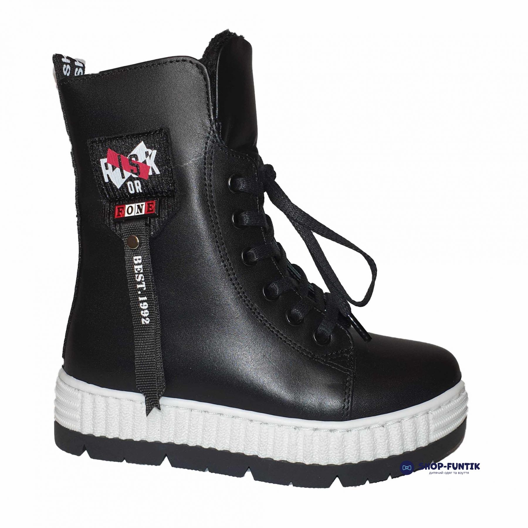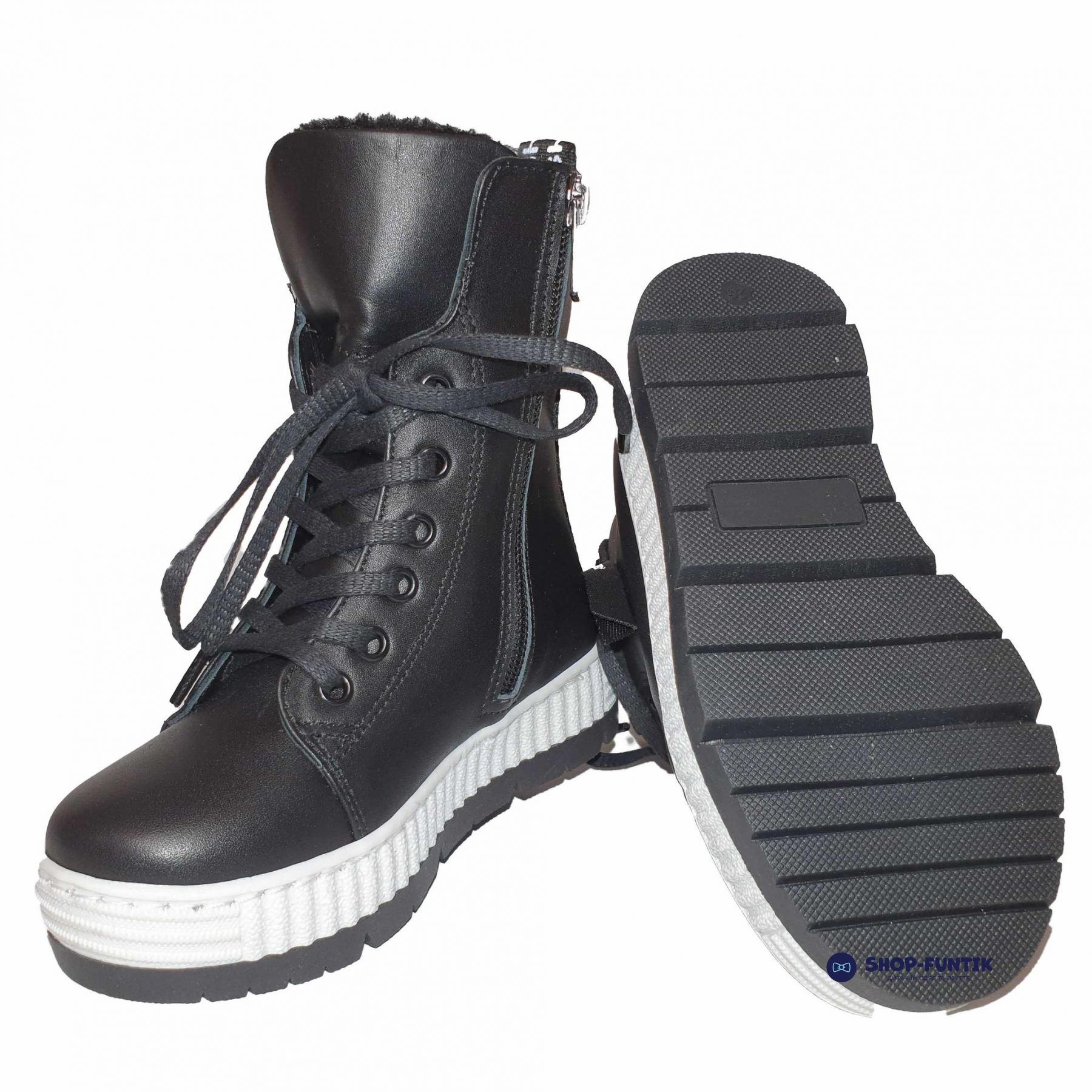 Ботинки Panda черные на высокой подошве 006698