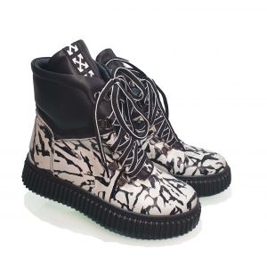 Пяточная область твердая, надежно фиксирующая положение стопы. Верхний край ботинок мягкий и не натирает ногу. Обувь застегивается на молнию, а с помощью декоративных шнурков на оригинальных петлях можно отрегулировать полноту.