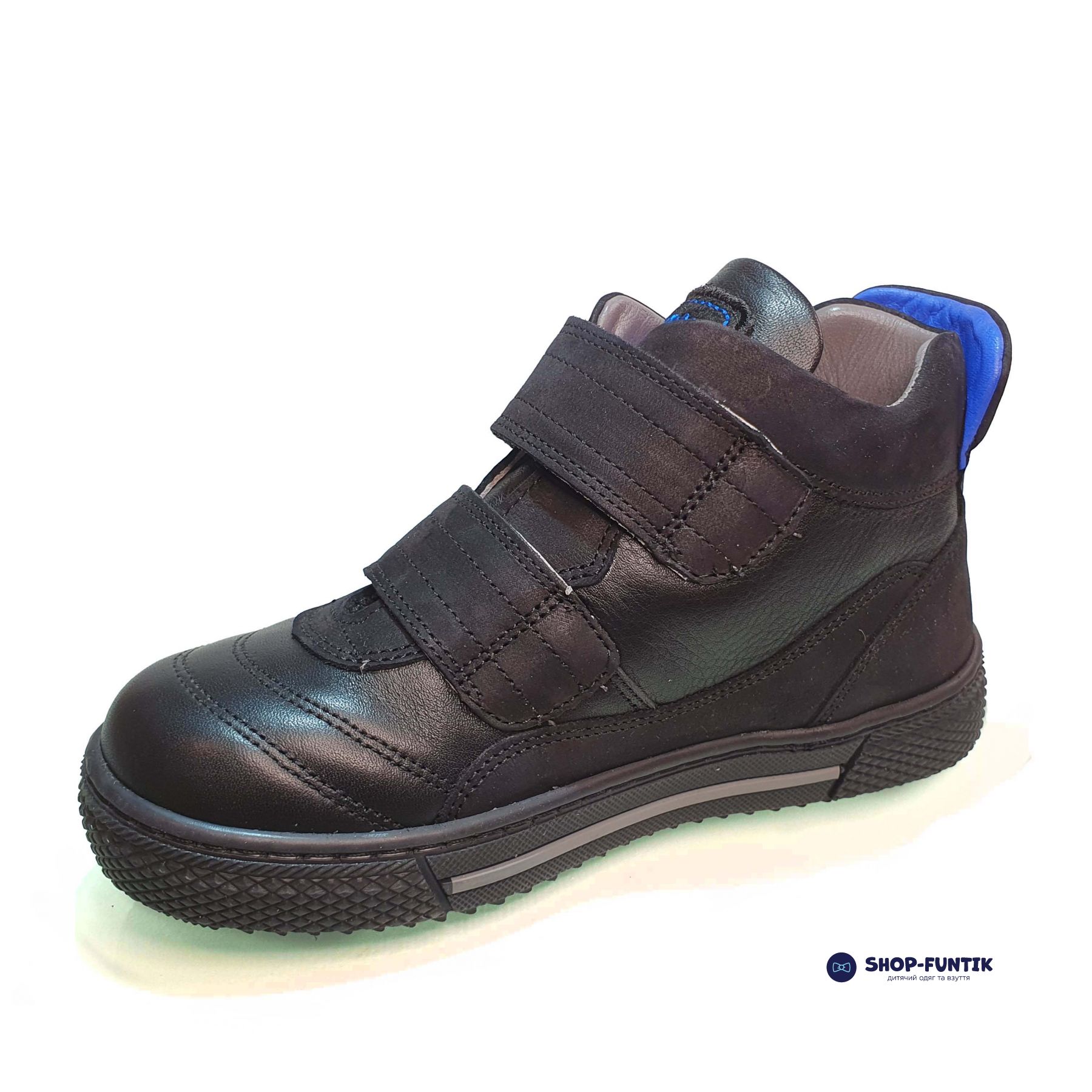 Особое внимание стоит уделить удобной застежке на две липучки, выполненной из нубука. Она обеспечивает надежную фиксацию ботинок на ноге, что особенно важно для активных мальчиков, которые не сидят на месте. Благодаря липучкам, обувь легко надевать и снимать, что упрощает самостоятельность ребенка.
