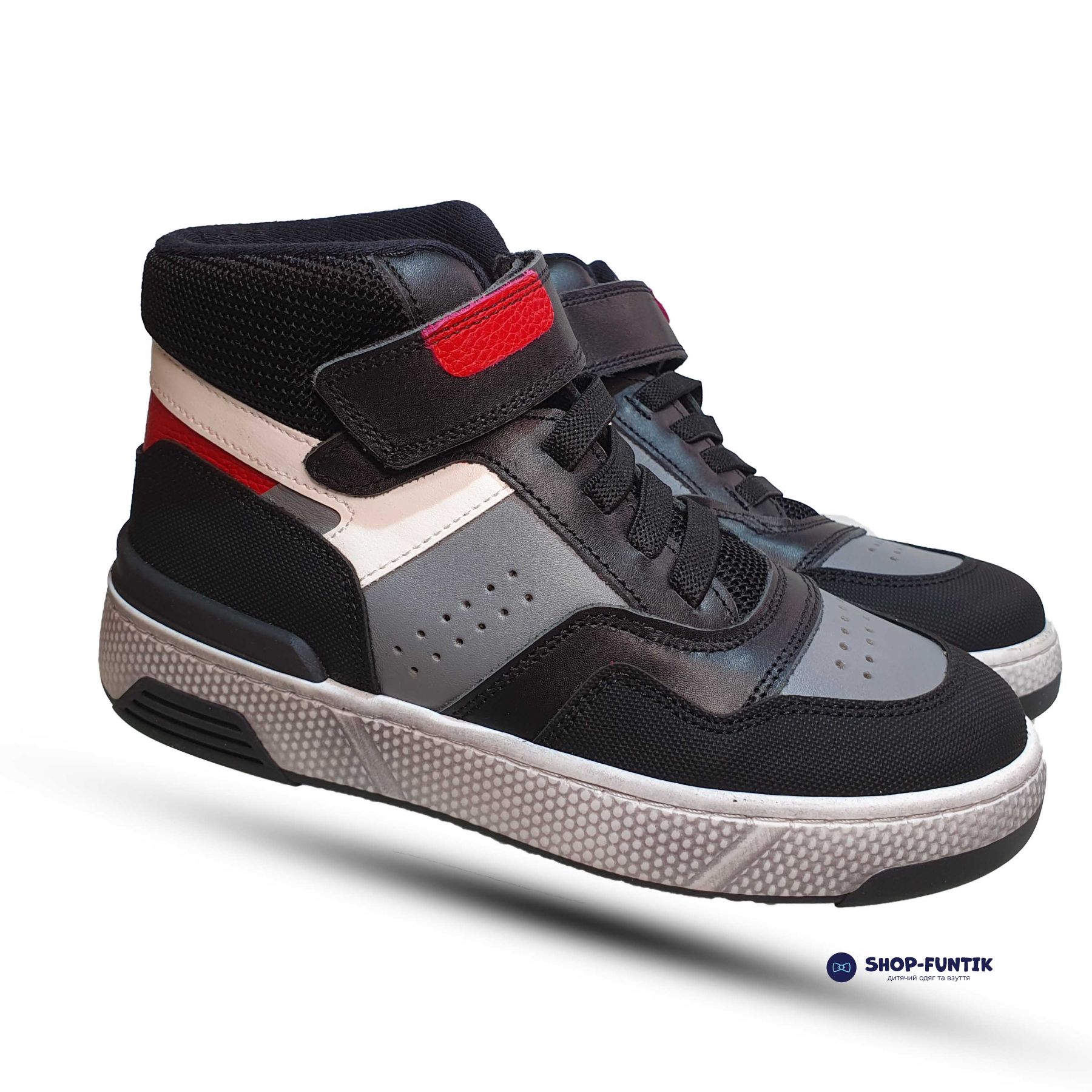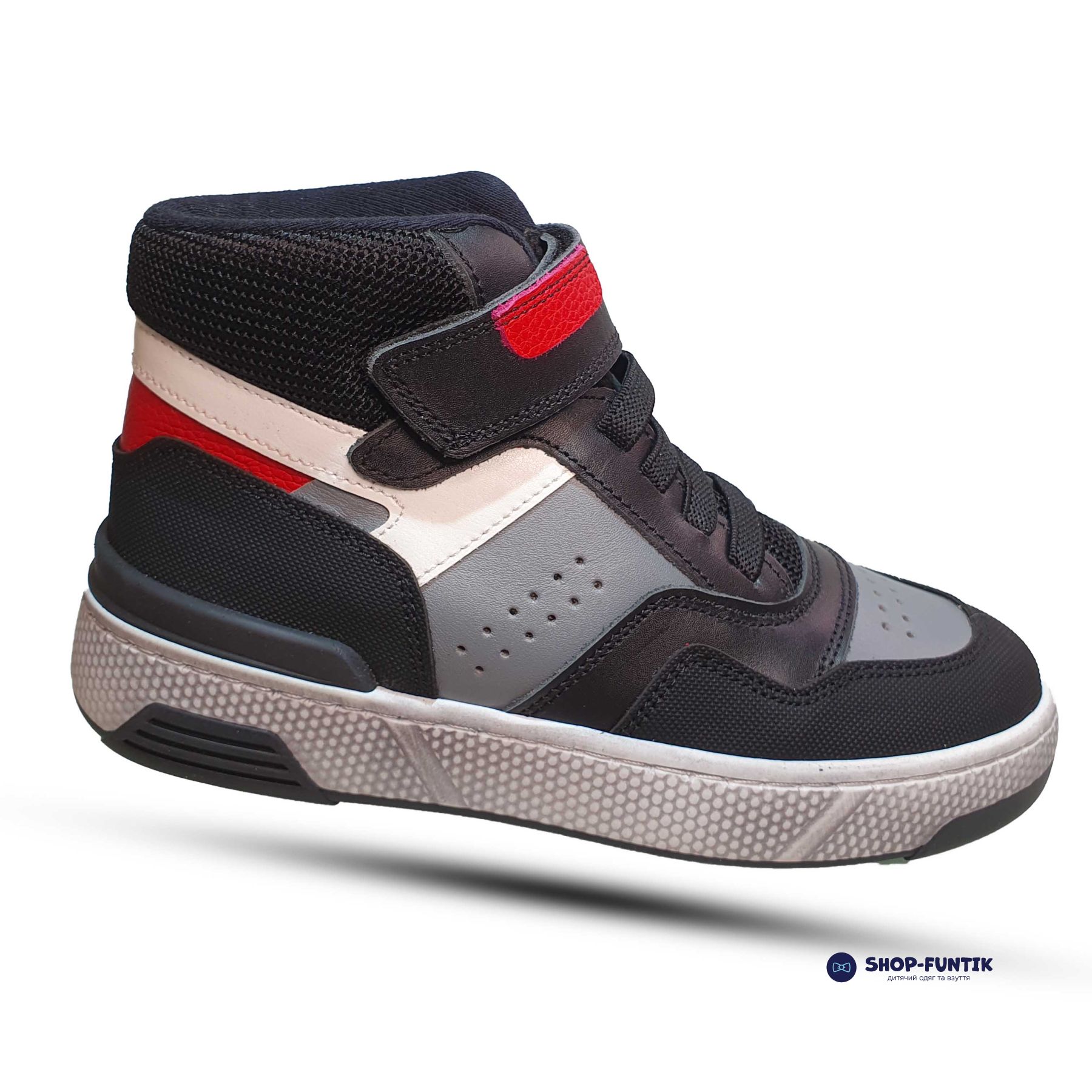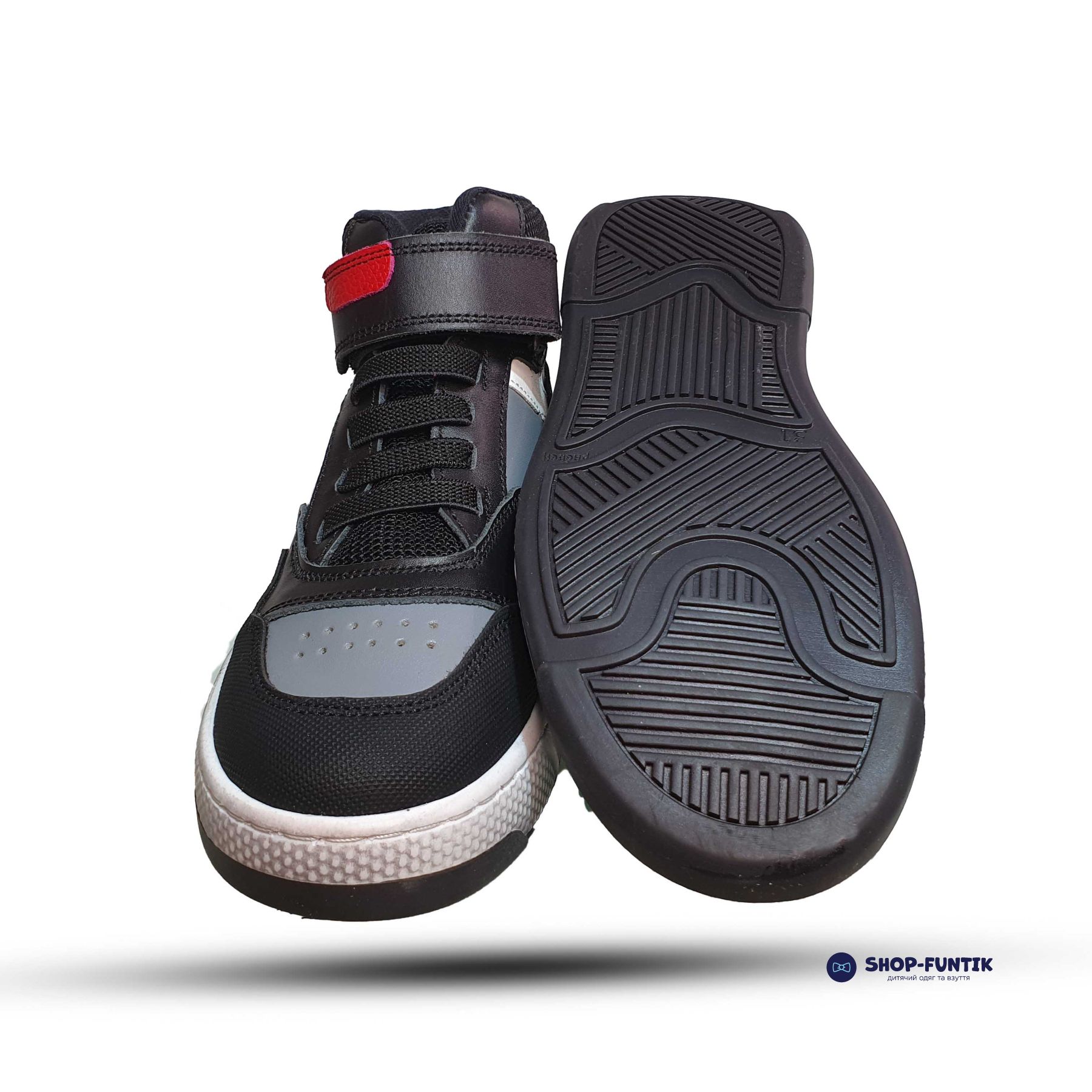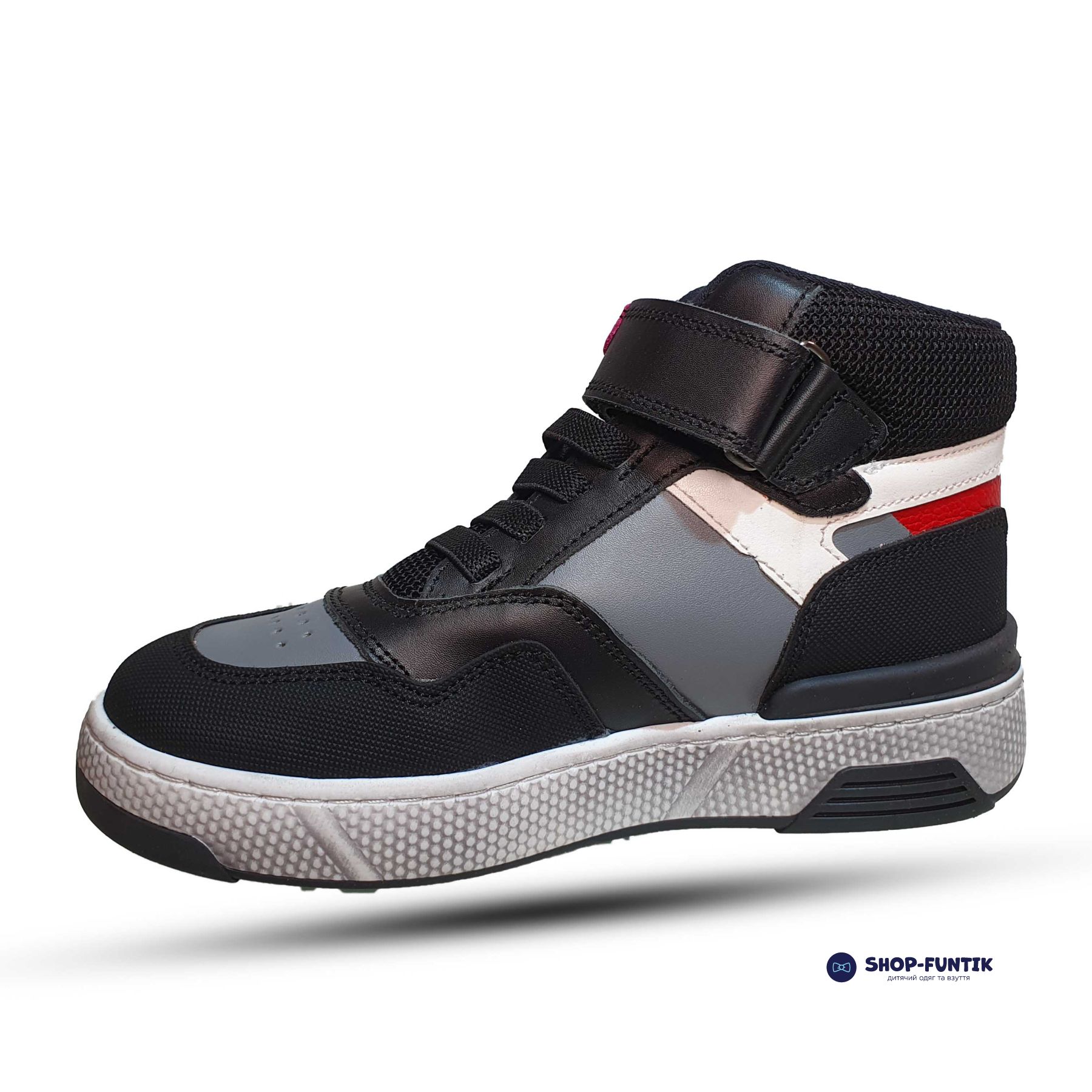 Модель оснащена декоративной шнуровкой из резинки, которая не только придает ботинкам оригинальный внешний вид, но и делает их более удобными для надевания и снятия. Фиксация на ноге осуществляется с помощью липучки, что обеспечивает надежность и простоту использования, особенно для маленьких детей, которые только начинают учиться самостоятельно обуваться.
