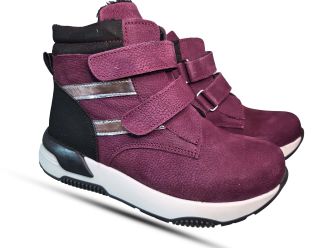 Модель адаптирована под анатомию детской стопы: правильная колодка поддерживает формирование здоровой походки и снижает нагрузку на ноги. Универсальный бордовый цвет с декоративными вставками позволяет сочетать ботинки как с повседневной одеждой, так и со спортивным стилем.