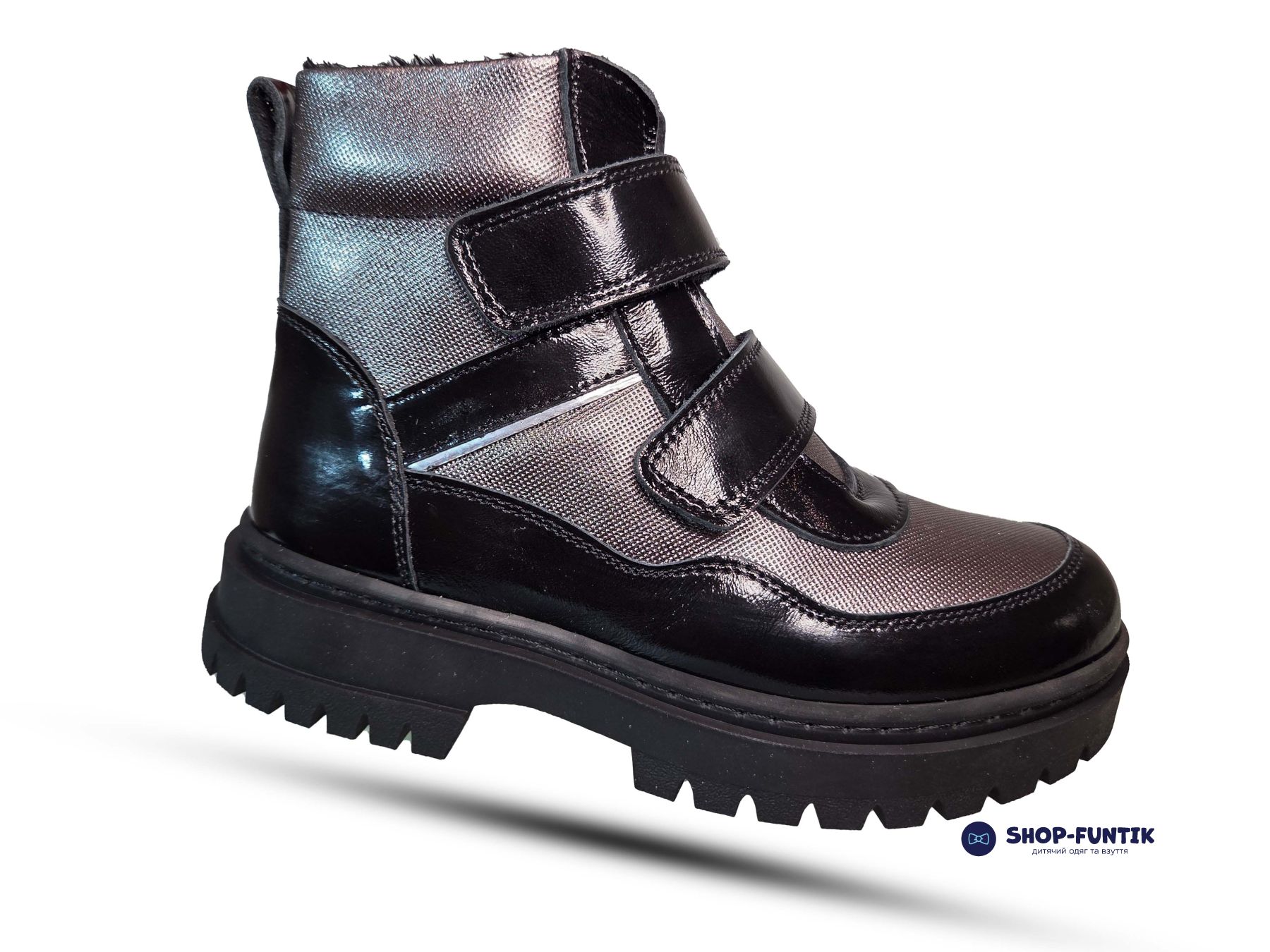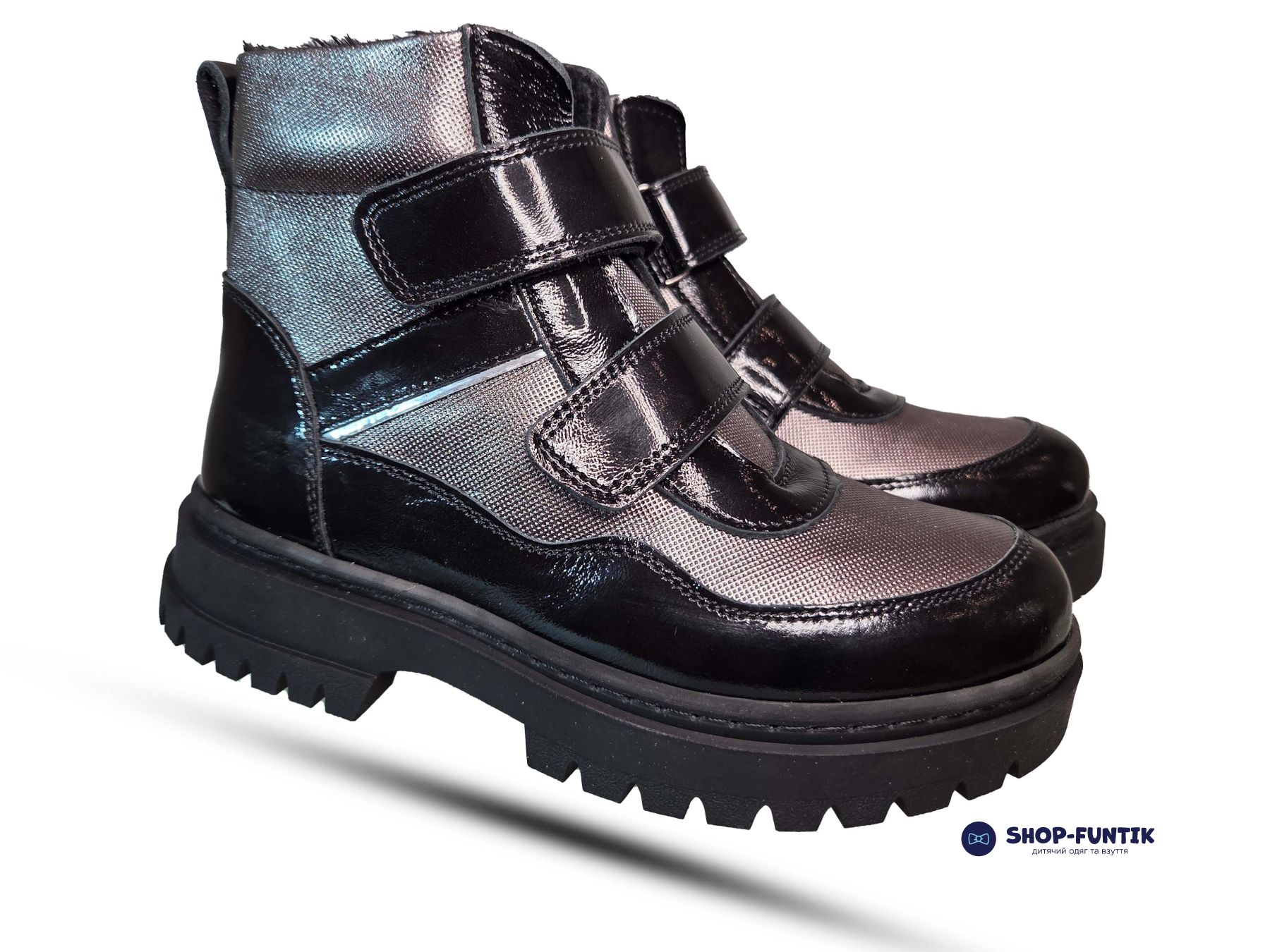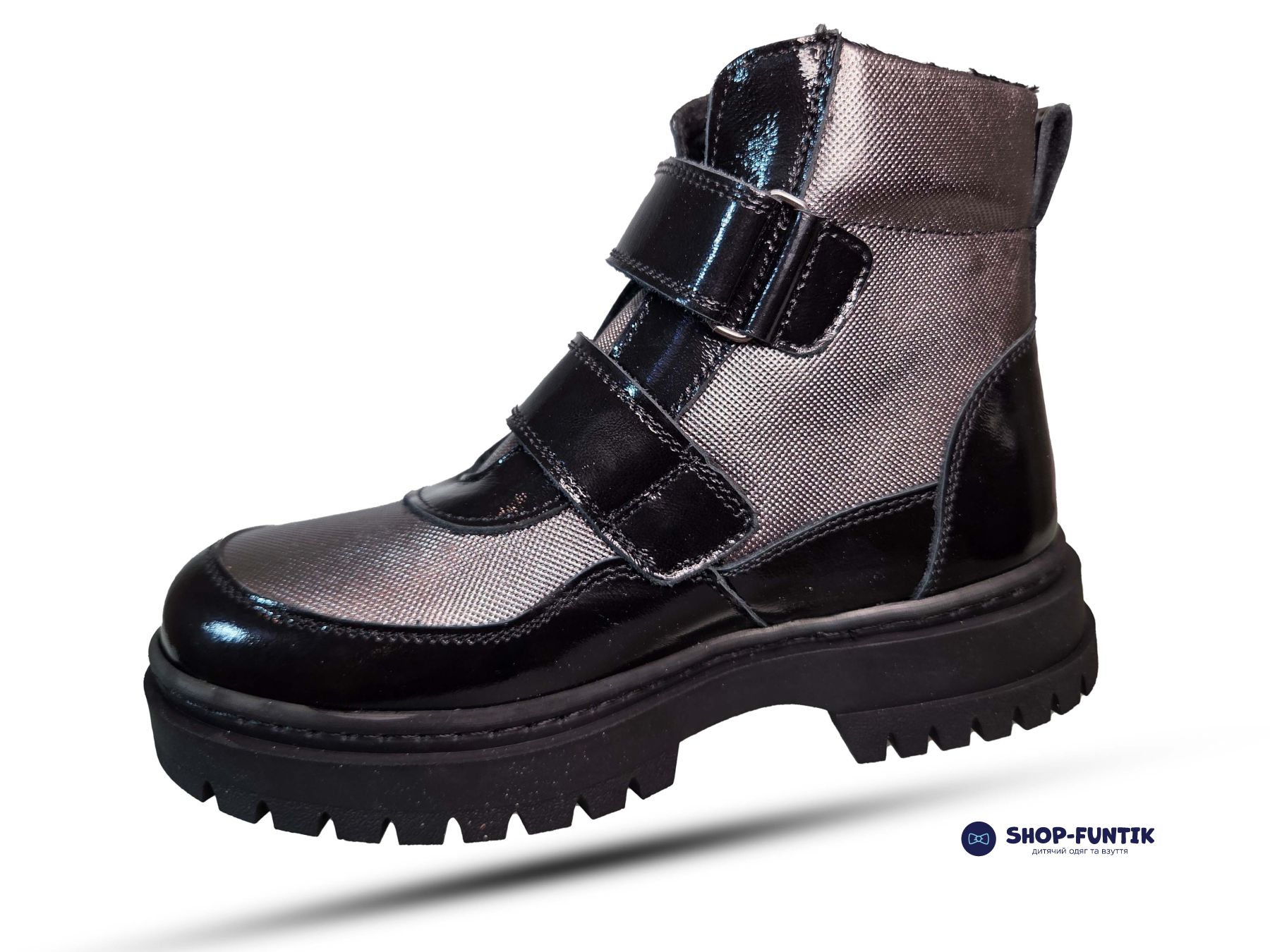 Детские демисезонные ботинки Todler черные с серым (лаковые)
