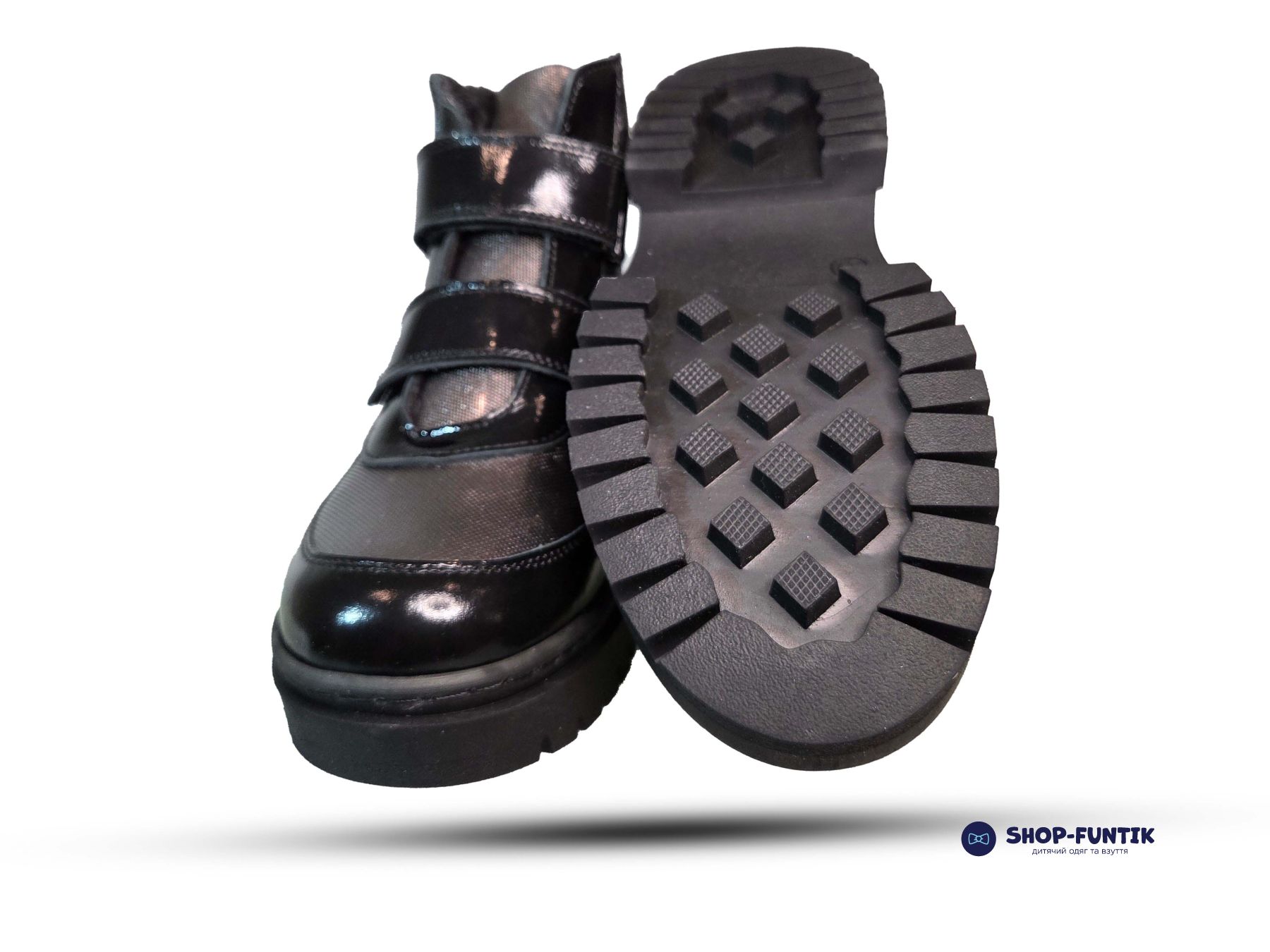Подошва выполнена из прочного материала с глубоким рельефным протектором. Она устойчива к скольжению, хорошо амортизирует и защищает от неровностей дороги, что делает ботинки безопасными и комфортными для активных детей.