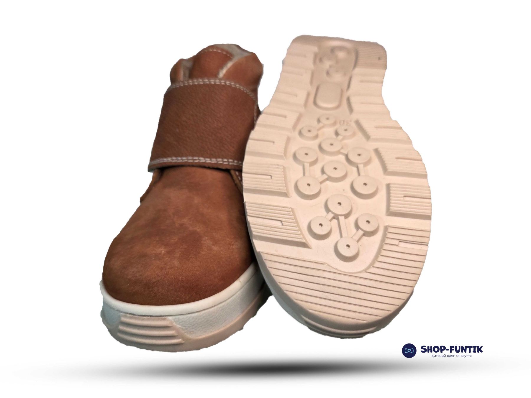Удобная застёжка на липучке обеспечивает лёгкое и быстрое обувание, что особенно важно для деток, которые активно двигаются и любят самостоятельность. Подошва изготовлена из износостойкого материала с хорошим сцеплением с поверхностью, что гарантирует безопасность при ходьбе.