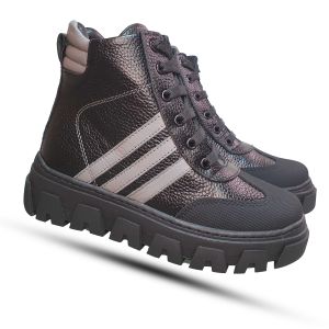 Застежка на молнии и декоративная шнуровка: чтобы ботинки легко надевались и снимались, на внутренней стороне предусмотрена удобная молния. При этом модель сохраняет стиль благодаря декоративной шнуровке снаружи, которая добавляет акцент и спортивный стиль. Такой подход обеспечивает максимальный комфорт и экономит время, позволяя ребенку самостоятельно справляться с обувью.