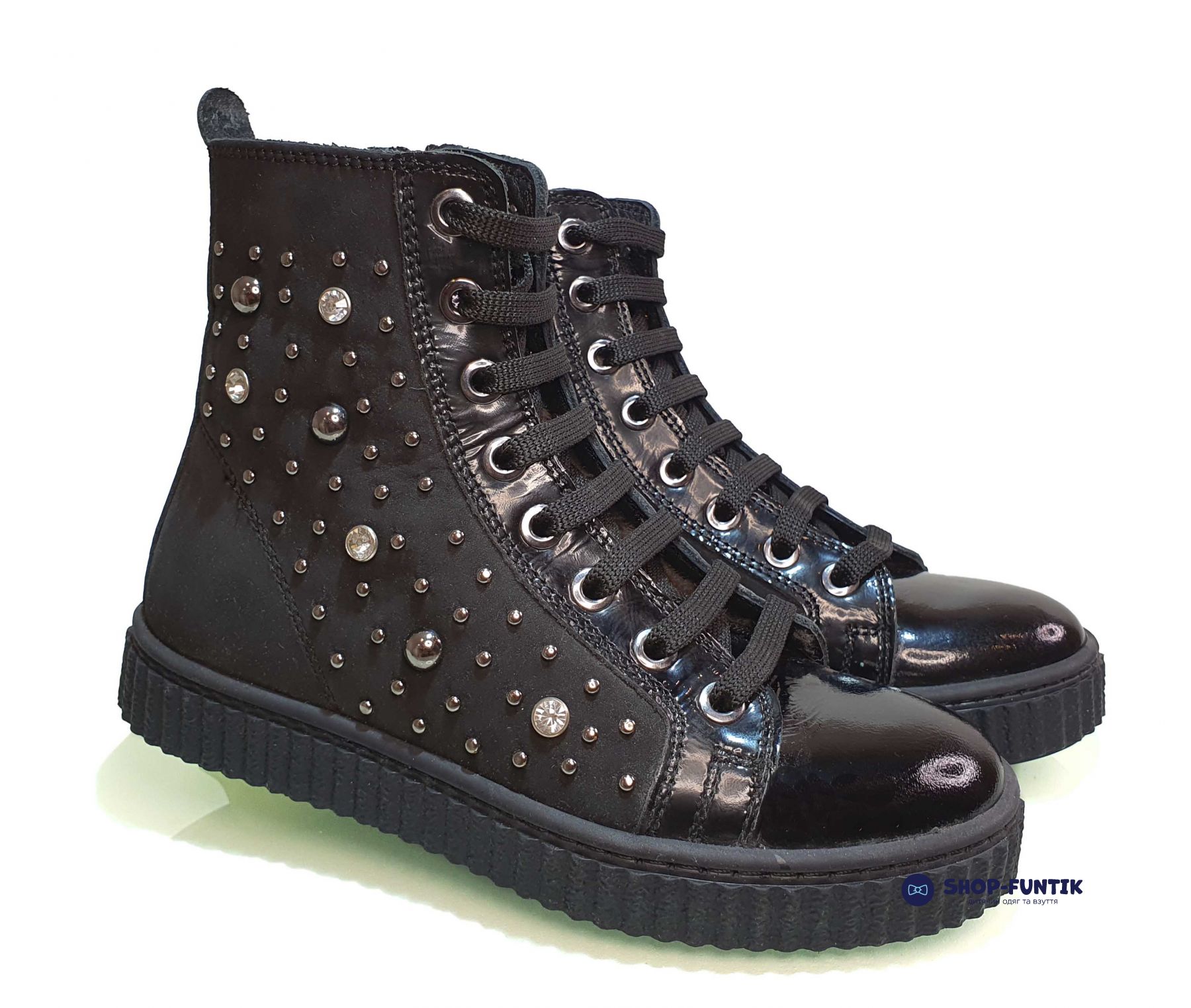 Ботинки Tunel черные украшены стразами и камушками 1873