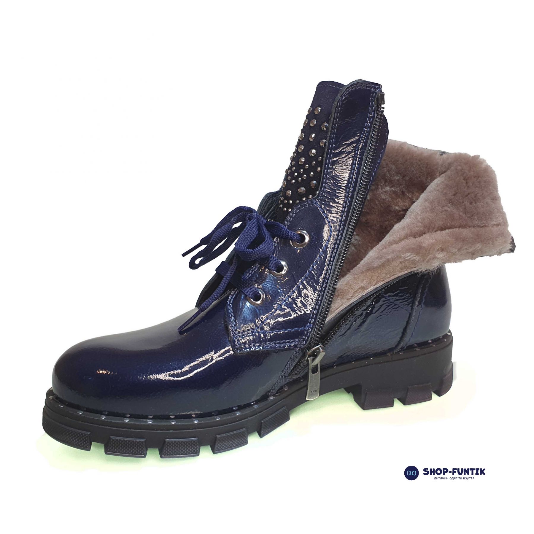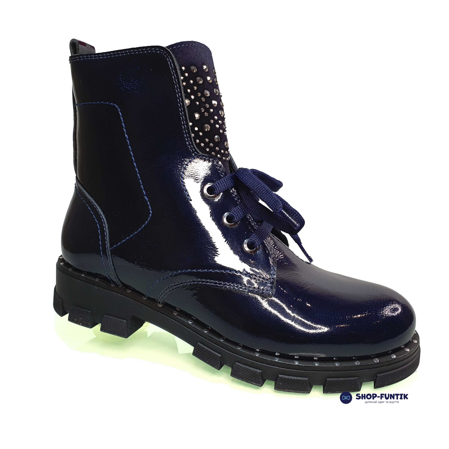 Эти синие лаковые ботинки созданы специально для юных модниц, которые хотят выглядеть элегантно даже в холодное время года. Верх выполнен из качественной лакированной кожи, придающей обуви блеск и изысканность, благодаря чему ваша девочка будет всегда в центре внимания.