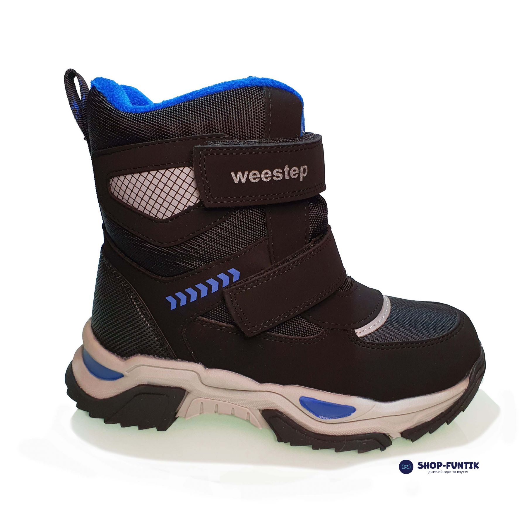 Подкладка ботинок Weestep из шерсти. Верх выполняется из эко кожи. В качестве застежки выступает хорошая липучка. Ребенок сможет справиться с ней самостоятельно в случае чего, но крепится она крепко и хорошо охватывает ногу. Модель ботинок дополнительно декорирована серыми вставками, а также логотипом бренда на липучке.