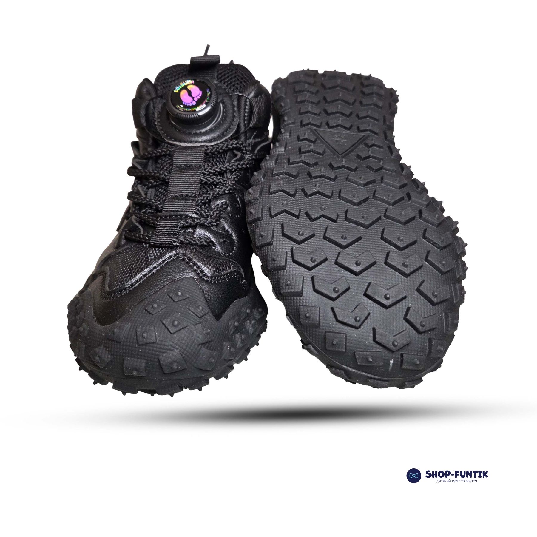 Главная особенность — роторная застёжка (система быстрой фиксации), которая позволяет ребёнку самостоятельно надевать и снимать обувь. Она надёжно удерживает ногу, обеспечивая плотную, но комфортную посадку. Для дополнительного декора и стильного вида предусмотрены декоративные шнурки.