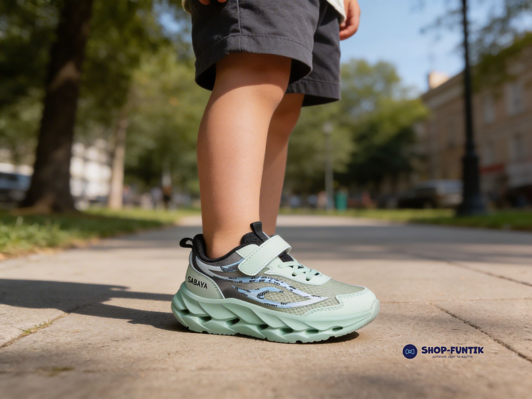 Верх кроссовок изготовлен из крепкой дышащей сетки, что обеспечивает хорошую вентиляцию и комфортный микроклимат внутри обуви даже в жаркую погоду. Благодаря этому ноги ребенка меньше потеют, а длительные прогулки, активные игры на улице или поездки становятся гораздо комфортнее. Дополнительные синтетические вставки укрепляют конструкцию обуви и помогают ей лучше держать форму.