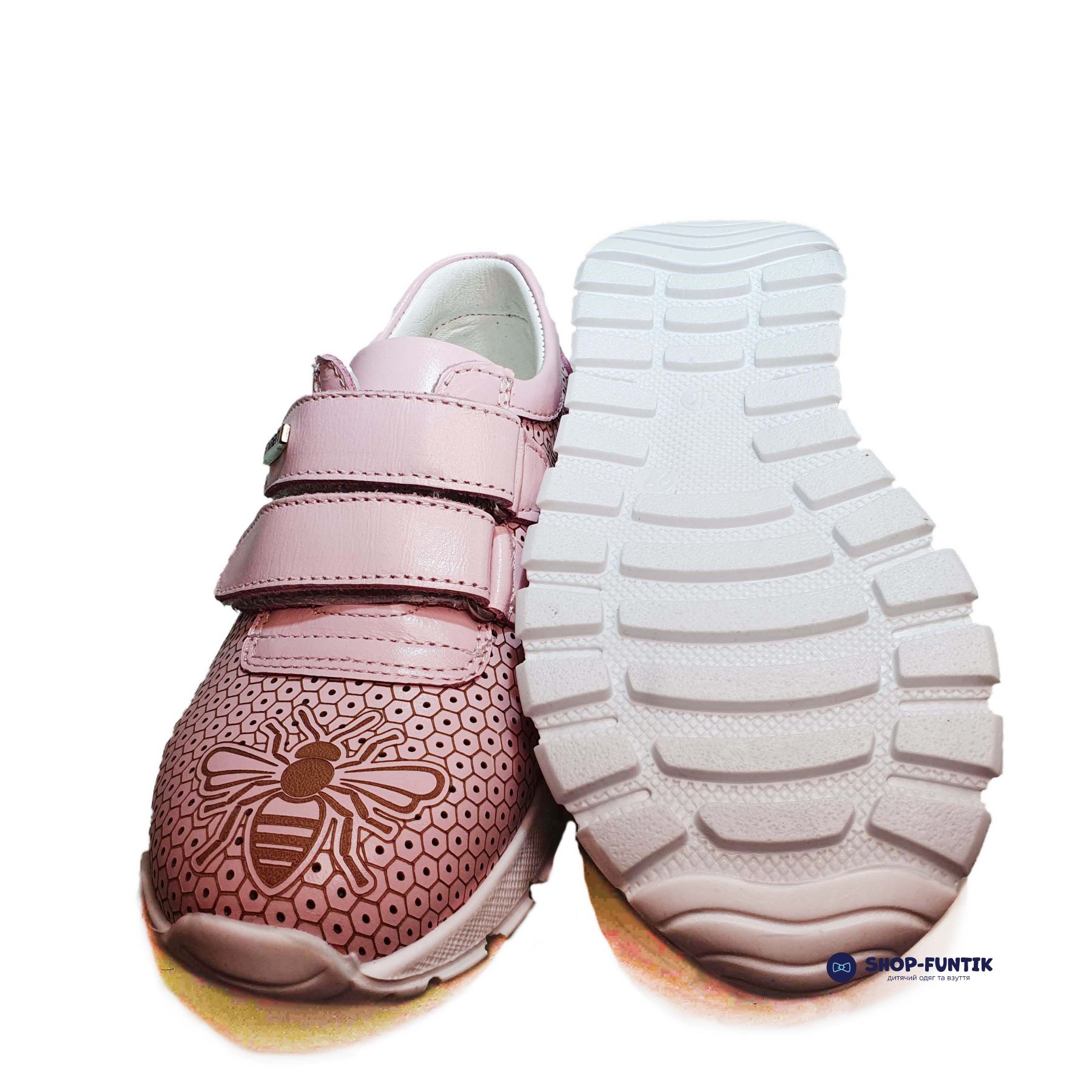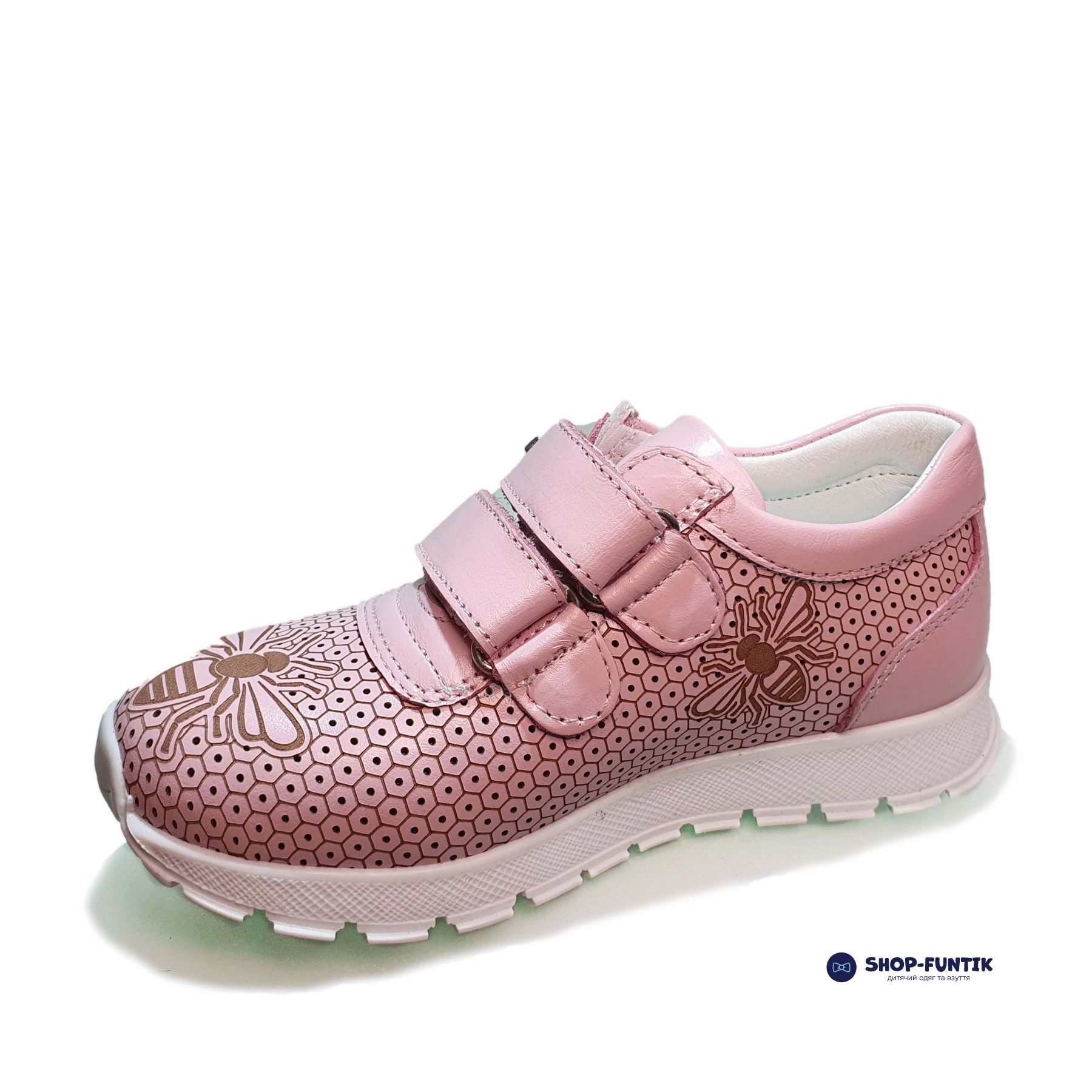 Декор: Кроссовки украшены пчелками, что придает им яркий и игривый вид. Этот дизайн делает обувь более привлекательной для детей и добавляет элементы веселья в их повседневный стиль.