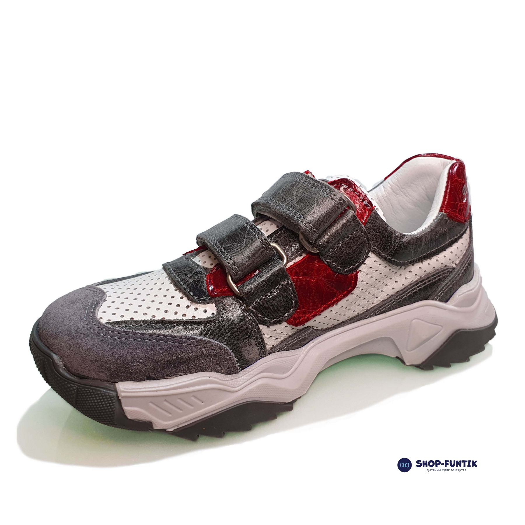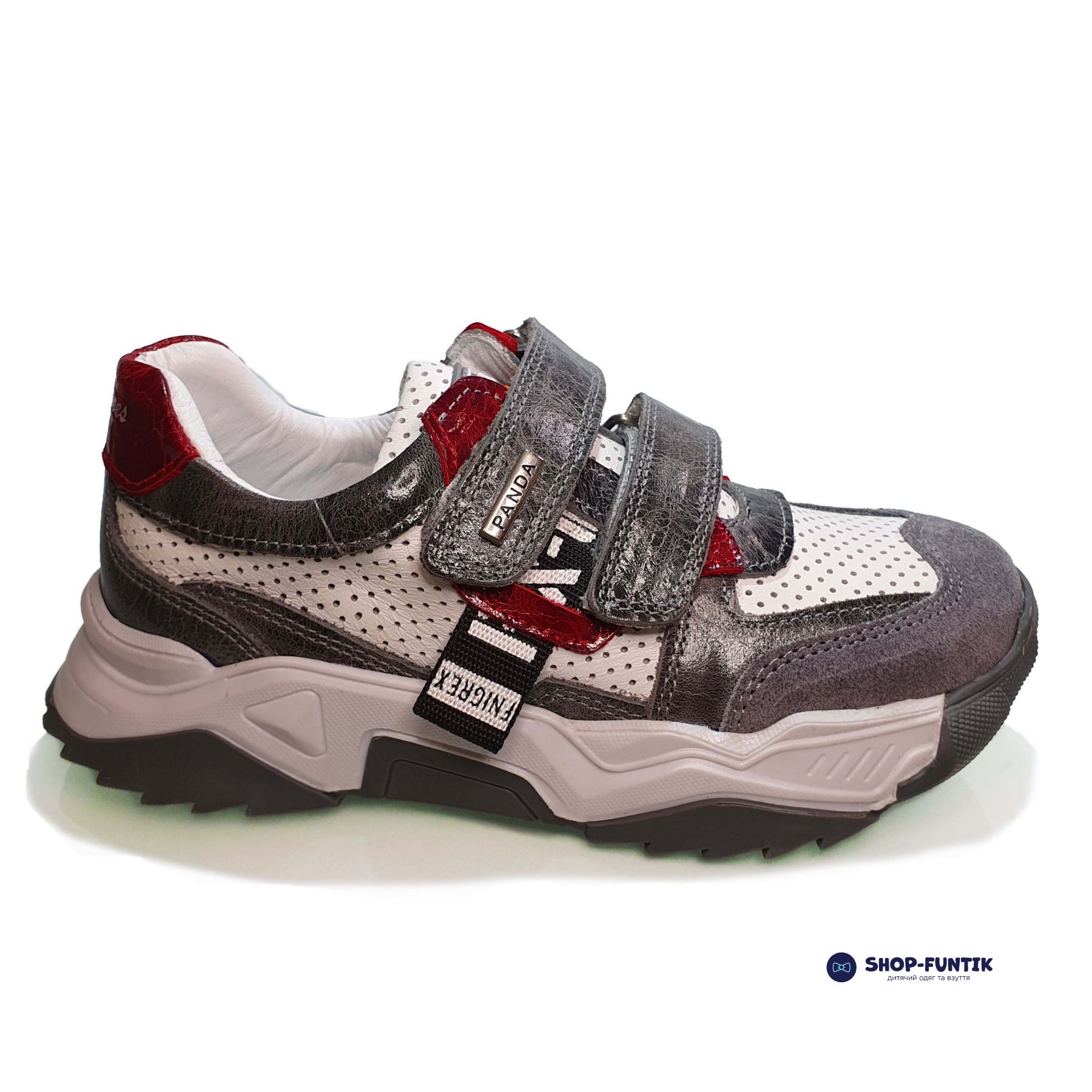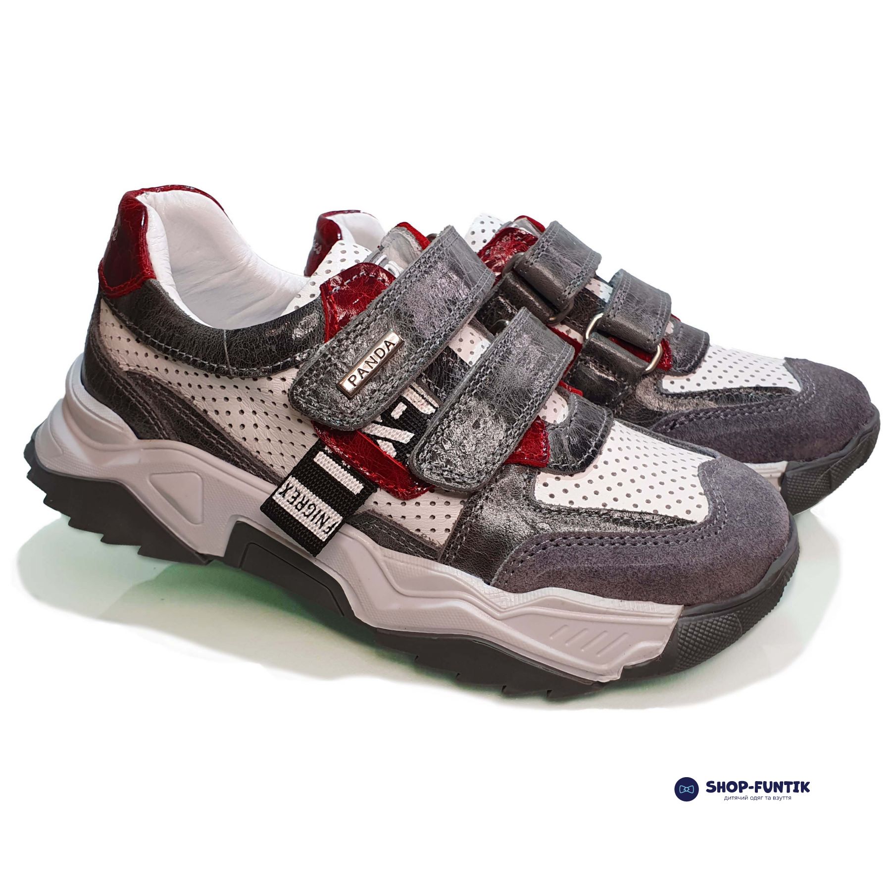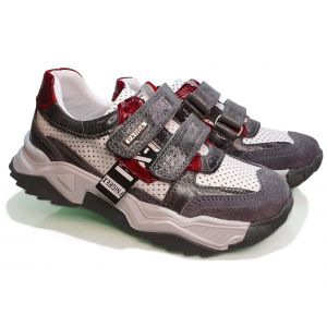 Белые детские кроссовки Panda от турецкого производителя идеально подойдут вашему ребенку. Стильный повседневный дизайн обязательно понравится окружающим и самому мальчику. За счет вставок серого, белого и красного цвета создается уникальный образ, который хорошо сочетается с любыми нарядами. Лучше всего покупать модель на сезон весна / лето. Подошва из комбинированного материала достаточно прочная и легкая. Выдерживает нагрузки, фиксирует ногу и повторяет ее основные движения, чтобы обеспечить ее правильное развитие. Верх и подкладка выполнены из кожи. В качестве дополнительного декора выступает стильная перфорация, которая также отводит лишнее тепло и нивелирует перегрев ноги. Застежки в виде липучек гарантируют надежный охват ноги обувью.