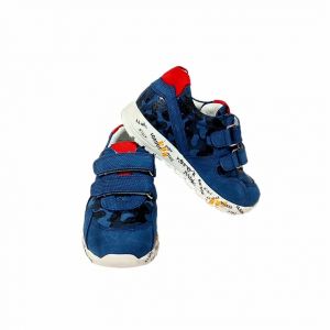 Носок и задник усилены синей кожей, что обеспечивает дополнительную защиту и долговечность. Внутри кроссовок мягкая кожа белого цвета, которая деликатно обхватывает стопу, создавая комфортные условия для ежедневного ношения. Две липучки позволяют легко надевать и снимать обувь, обеспечивая идеальную посадку по ноге.