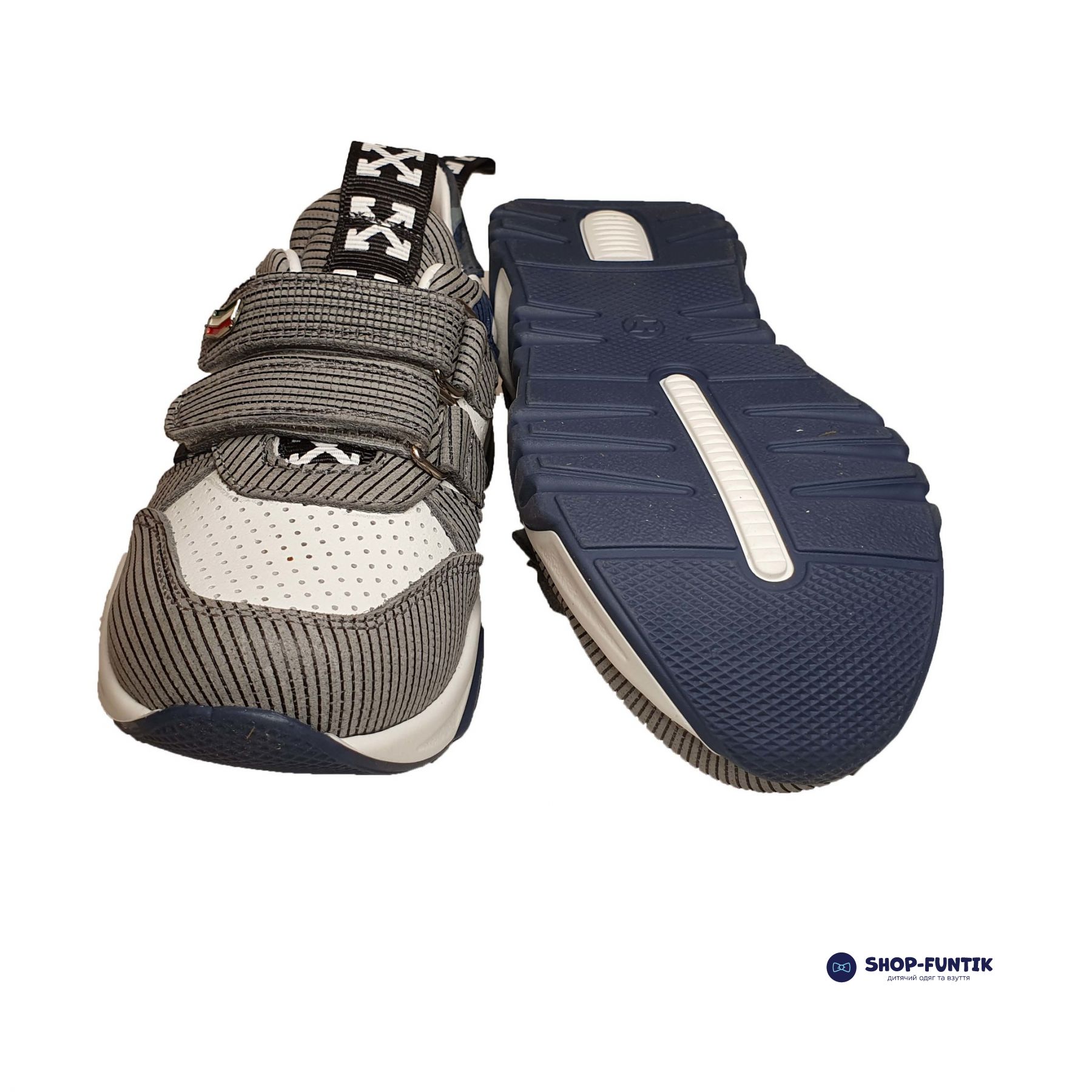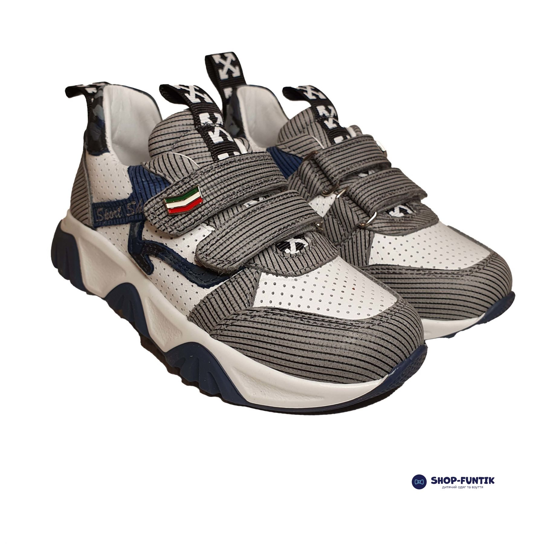 Кроссовки Panda серо белого цвета с двумя регулируемыми застежками липучками хорошо подойдут для весенне-летнего периода. Кожаная обувь декорирована разноцветными аппликациями. Комбинированная подошва выполнена в белом и темно-синем цвете. Обувь с высоким задником и закрытым носком удобна и для прогулок, и для активной игры. Кроссовки турецкого производства выполнены в спортивном стиле. Благодаря сдержанной серо белой палитре обувь будет хорошо сочетаться с любой детской одеждой. Купить кроссовки для мальчика можно в наших магазинах в Киеве или в интернет-магазине. Бесплатная доставка по Украине. Необходимо оформить заказ от 3000 грн.