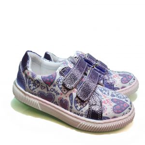 Кроссовки Panda с сиреневым принтом и сиреневыми липучками — это яркая и стильная модель, созданная специально для тех, кто ценит оригинальный дизайн и комфорт. Верхняя часть обуви выполнена из высококачественной кожи с весёлым принтом в виде сердечек, что придаёт кроссовкам особый шарм и игривость. Эти кроссовки идеально подойдут для девочек, которые хотят выделяться и носить удобную и красивую обувь.