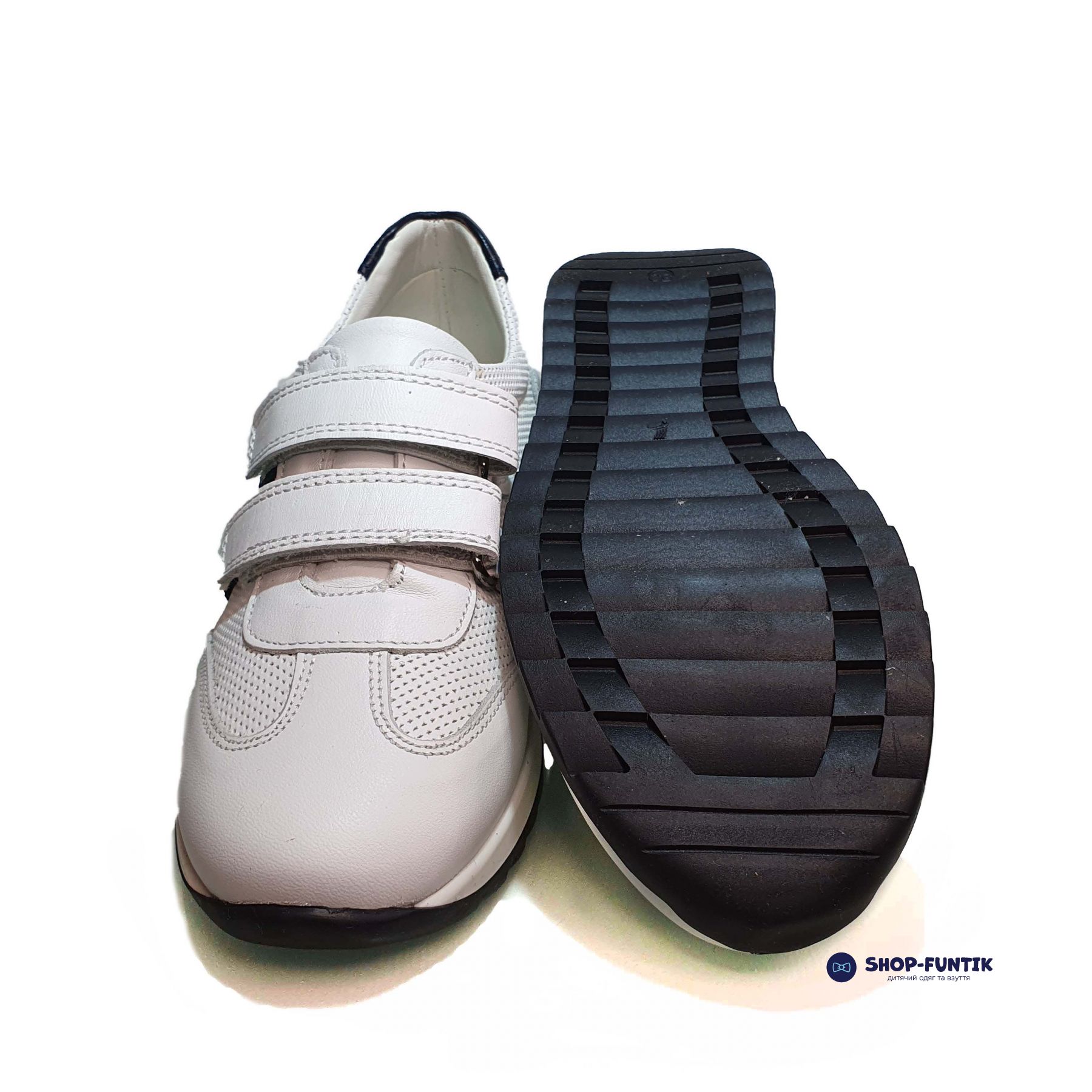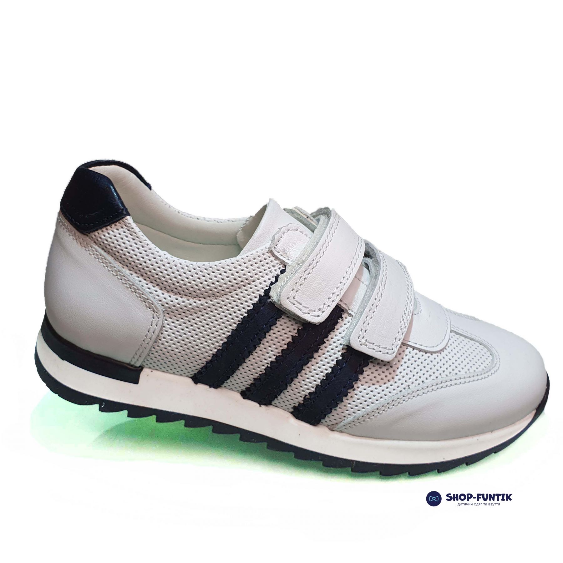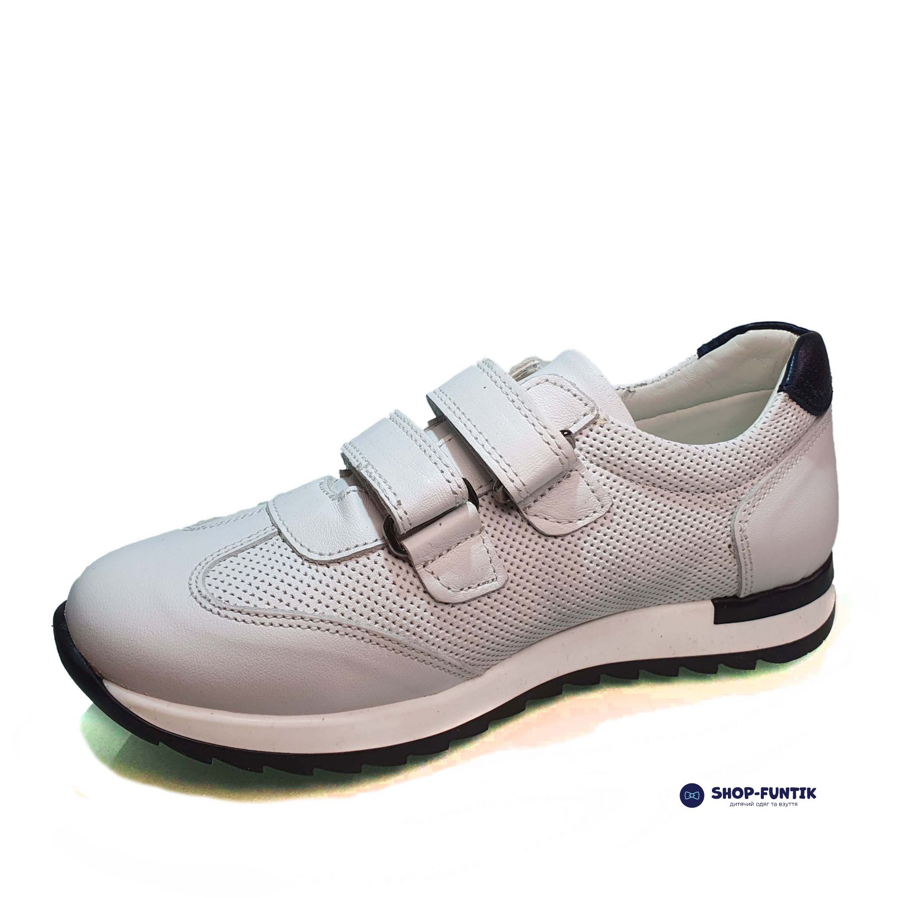 Цвет белый. В качестве дизайнерских элементов бренд использовал аппликацию черного цвета. Модель по стилю напоминает обувь для спортсменов, что понравится мальчикам, которые пытаются копировать родителей, старших детей, героев из мультфильмов и так далее.
