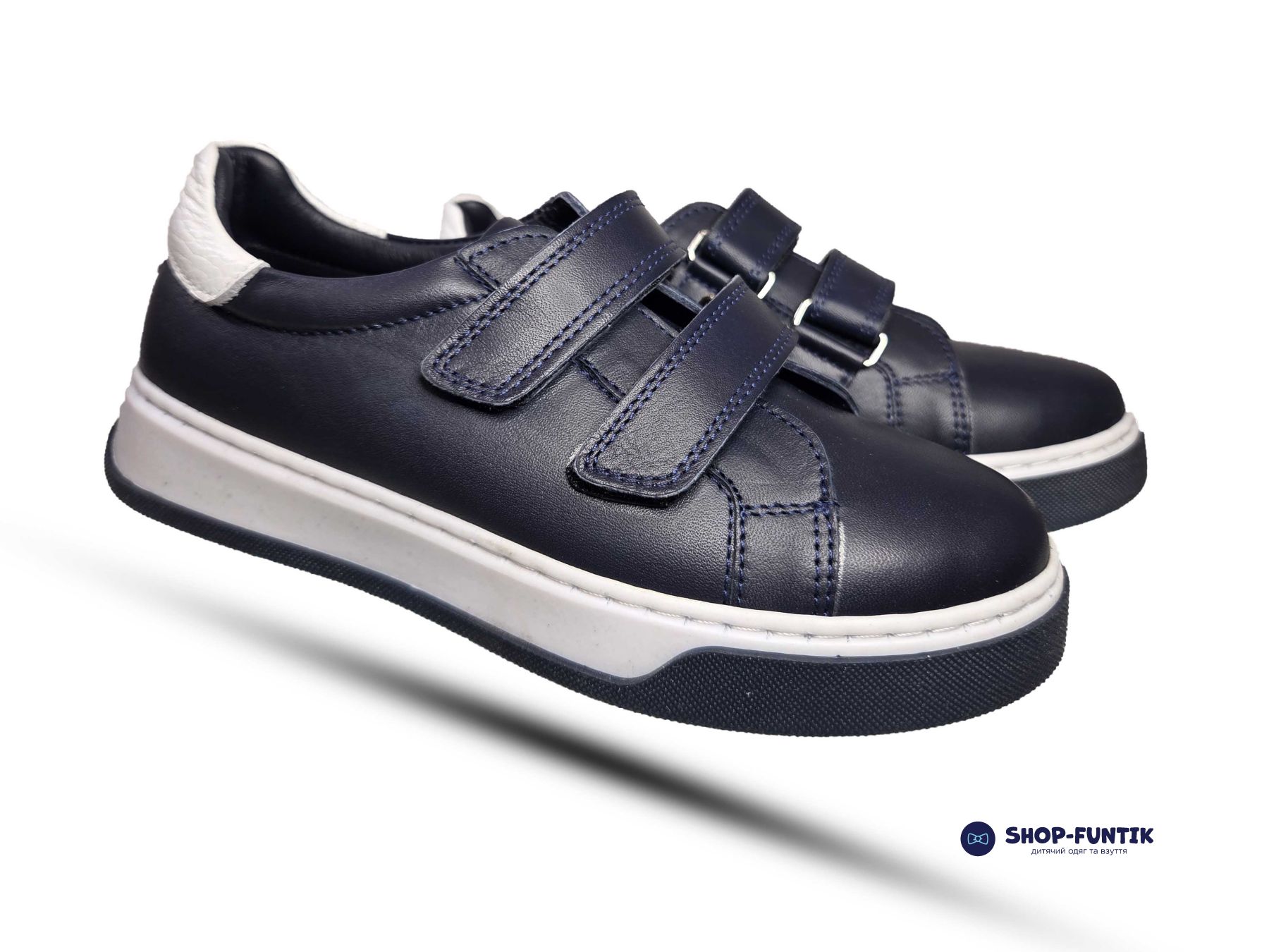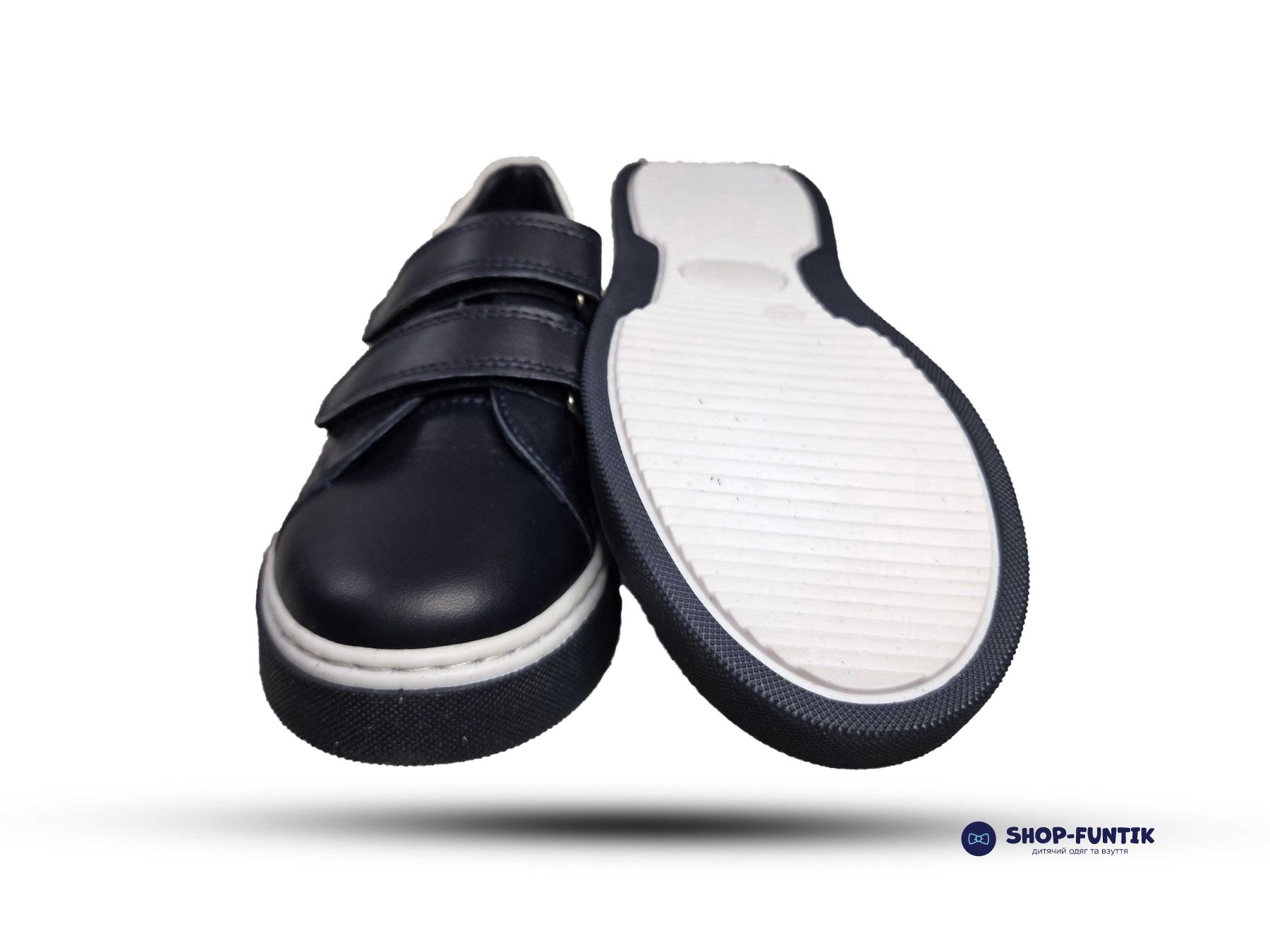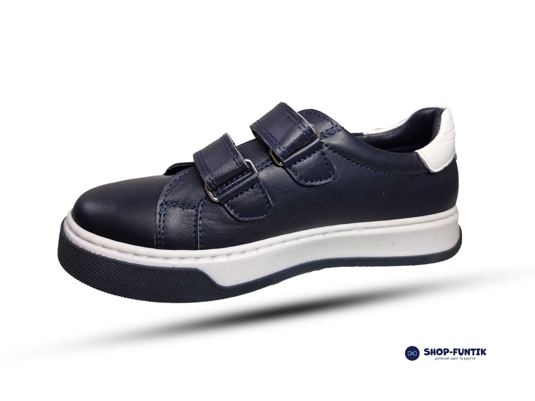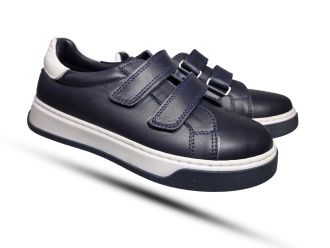 Две широкие липучки позволяют легко надевать и снимать обувь даже самым маленьким детям. Современный тёмно-синий цвет с белой подошвой делает модель универсальной – подходит для школы, прогулок, поездок и торжеств.