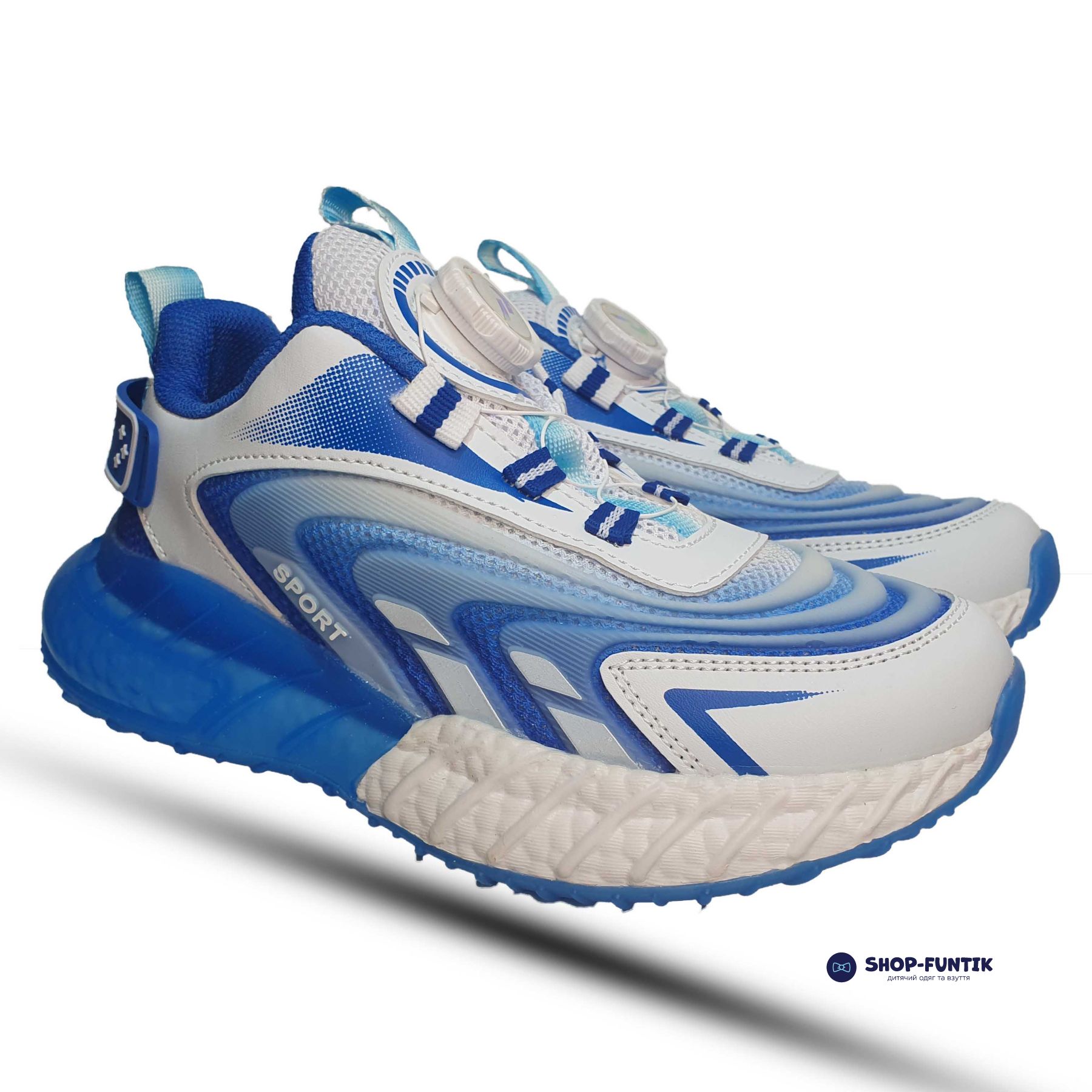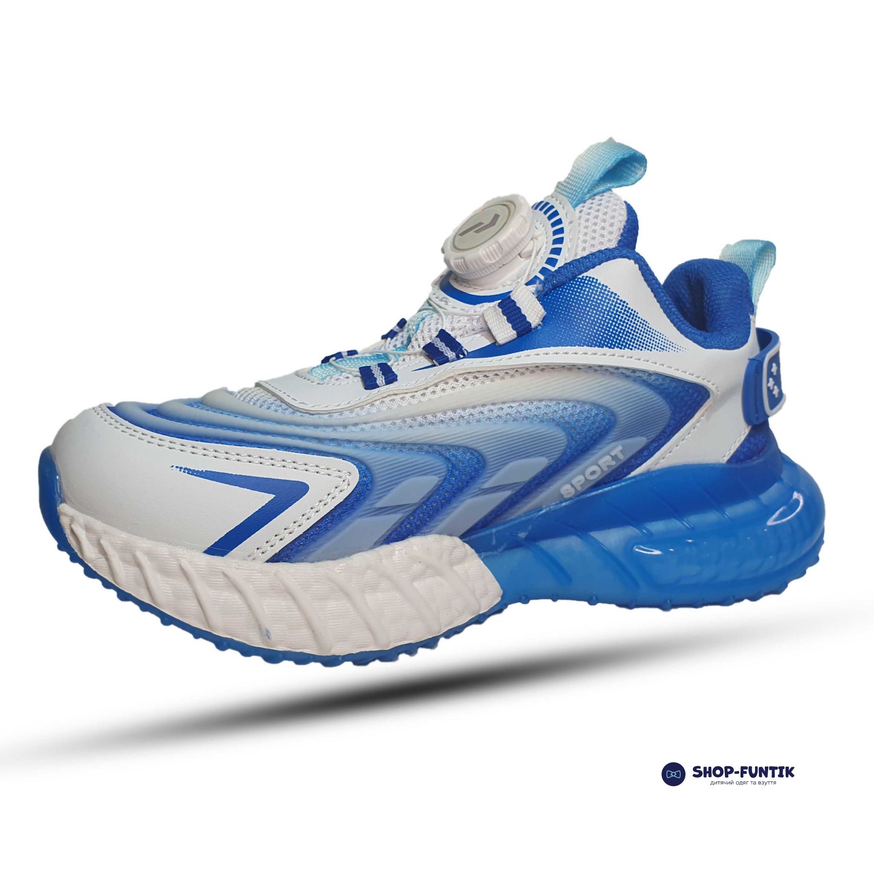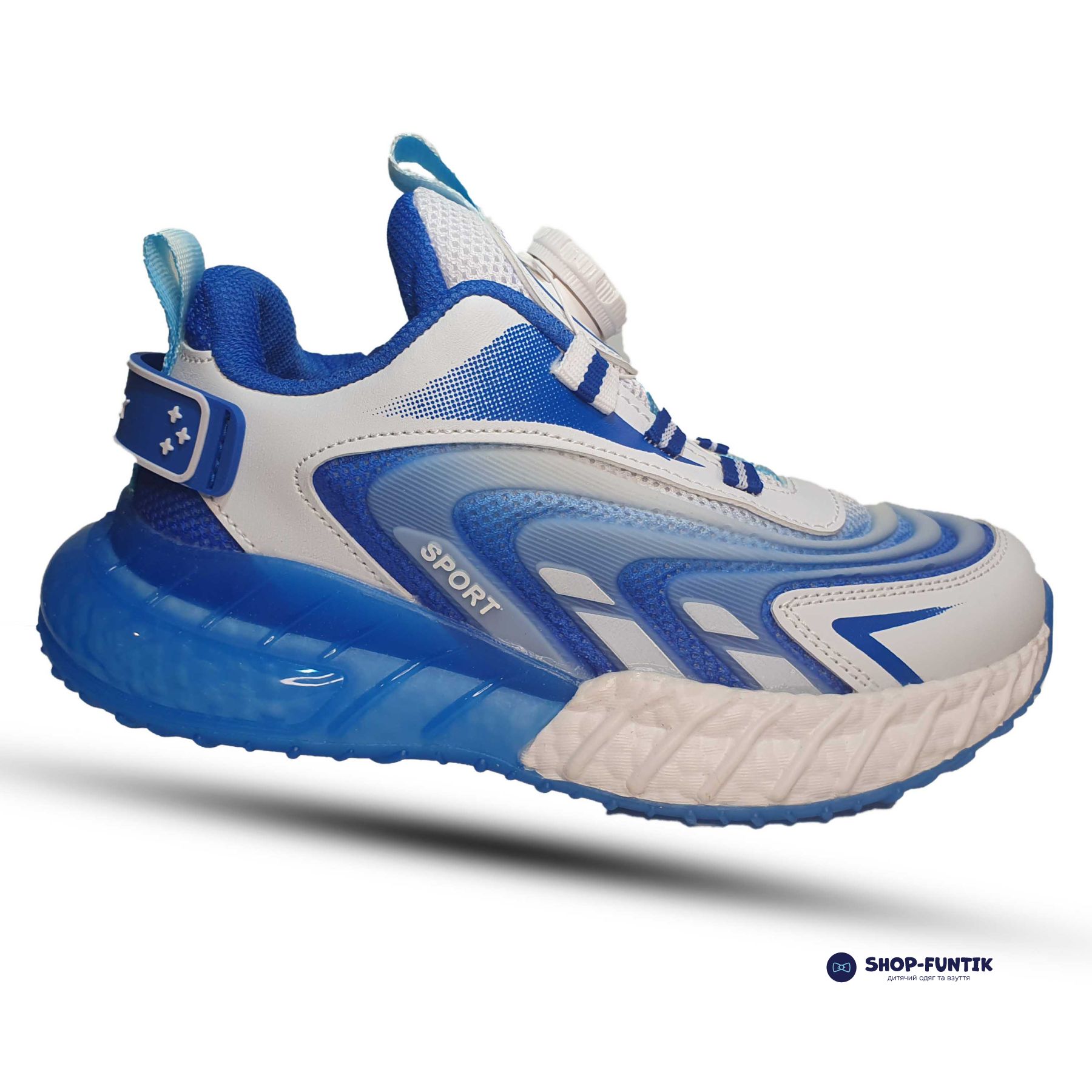 Спортивная обувь для мальчиков выполнена из текстиля, поэтому хорошо пропускает воздух. Ткань мягкая на ощупь, легкая. Стильно выглядит из-за необычного дизайна в бело синих оттенках.