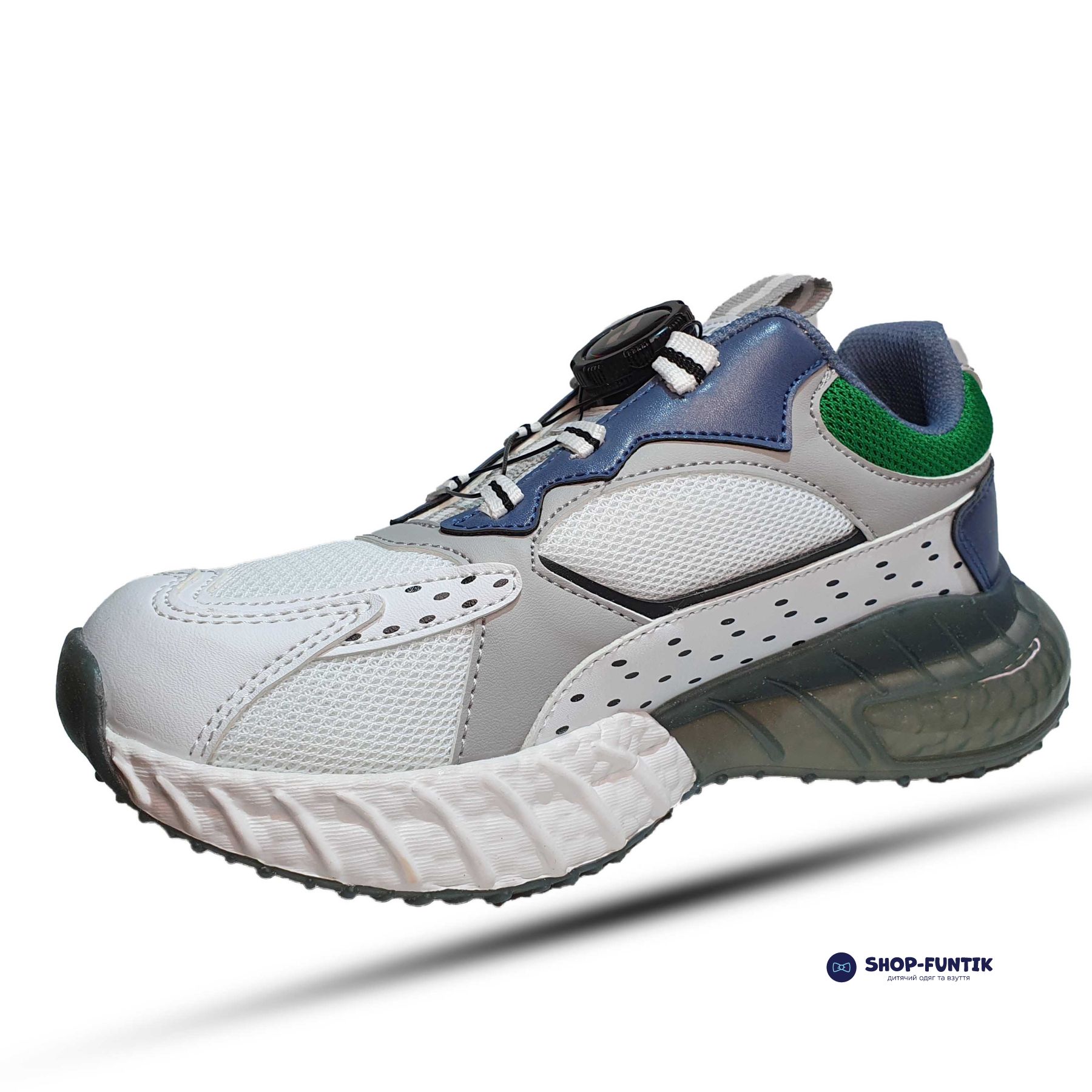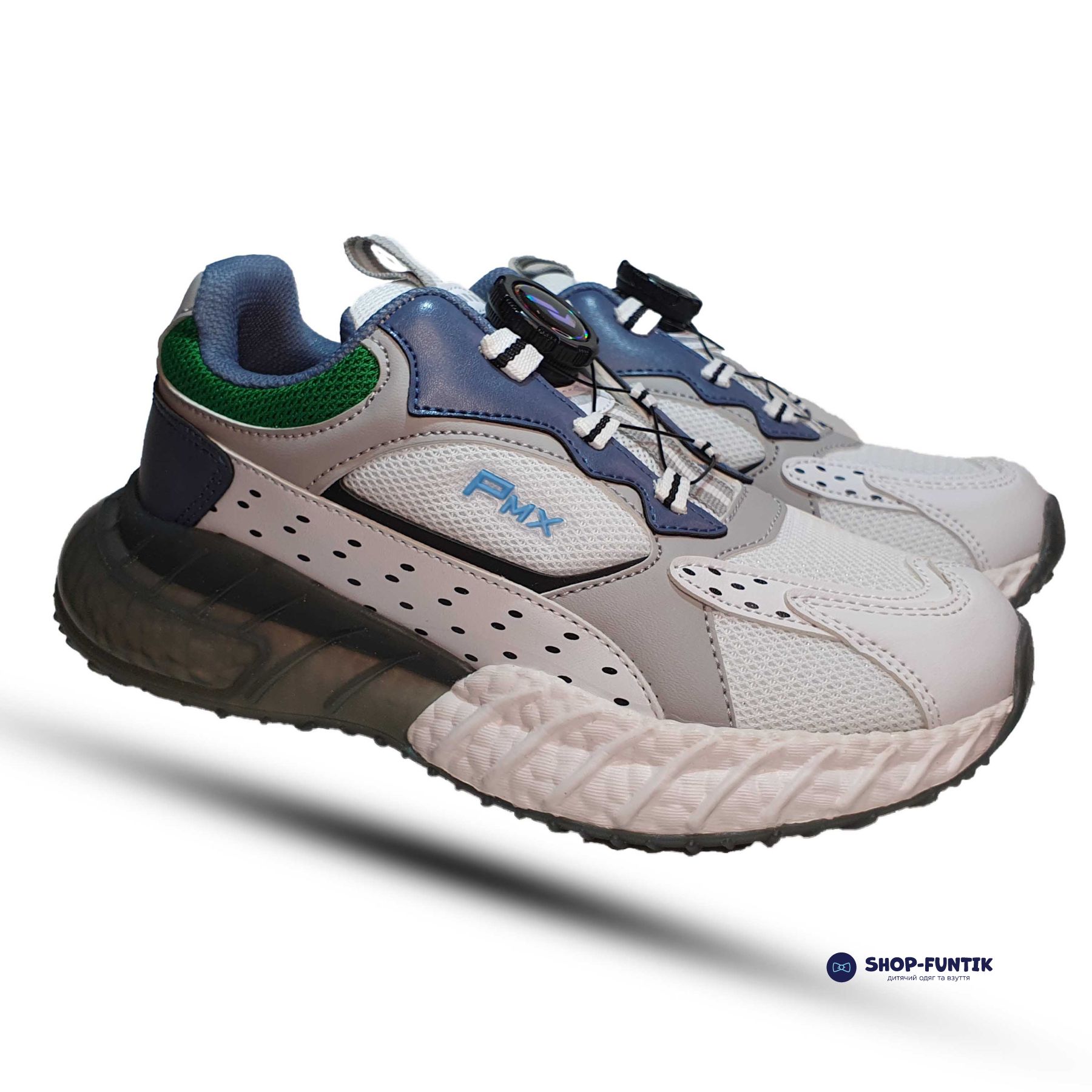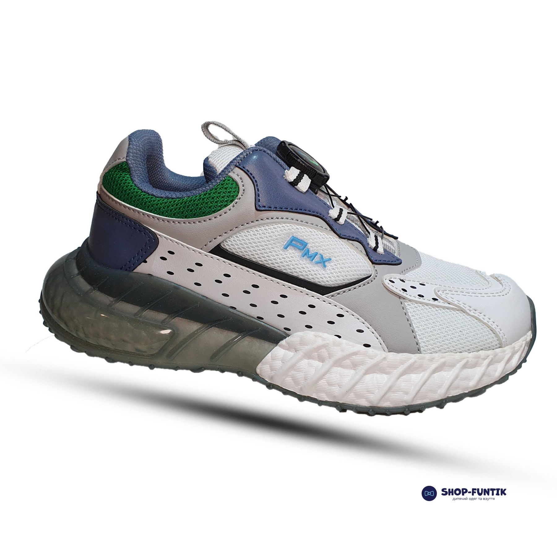 Кроссовки Promax бело-серые с зеленым декором 1933