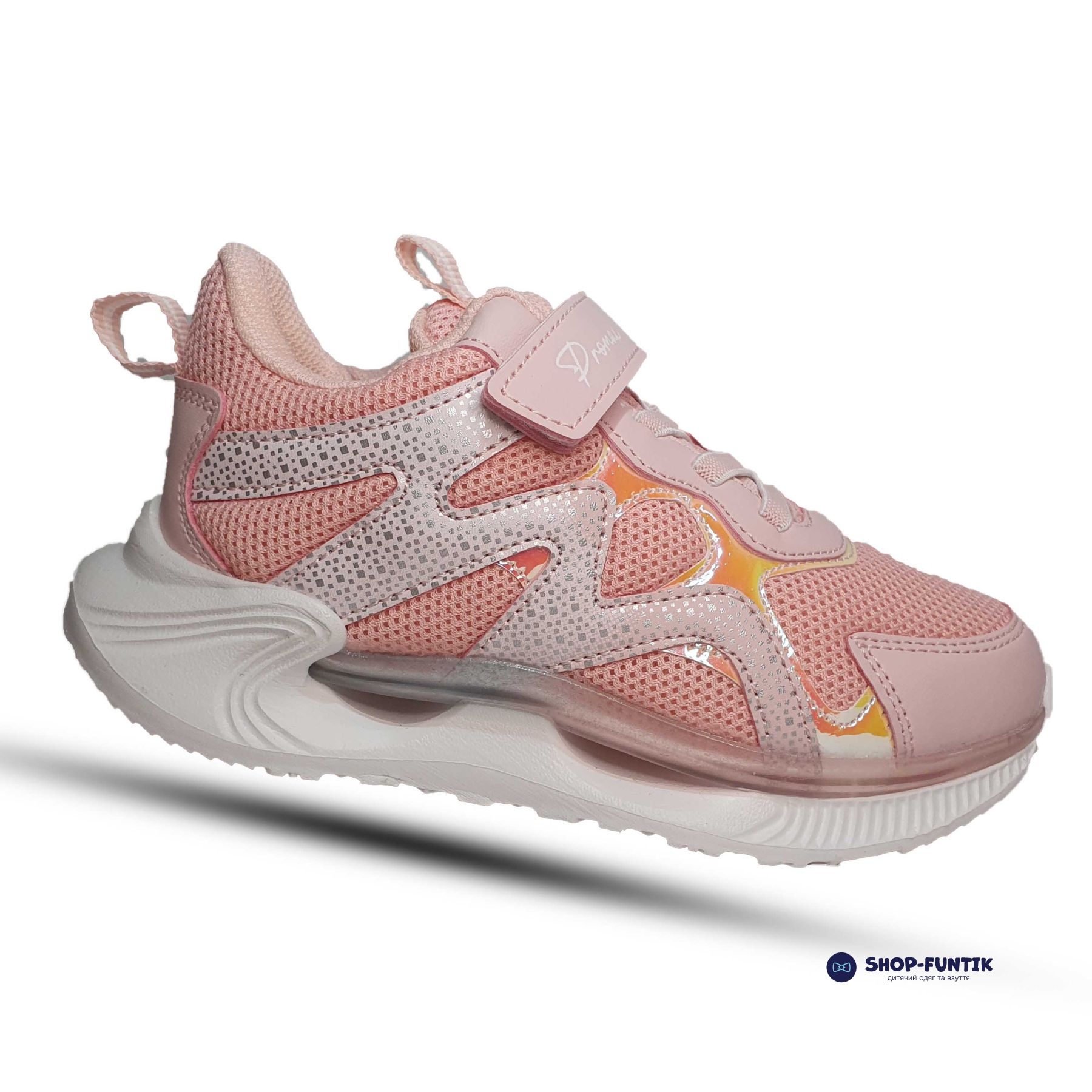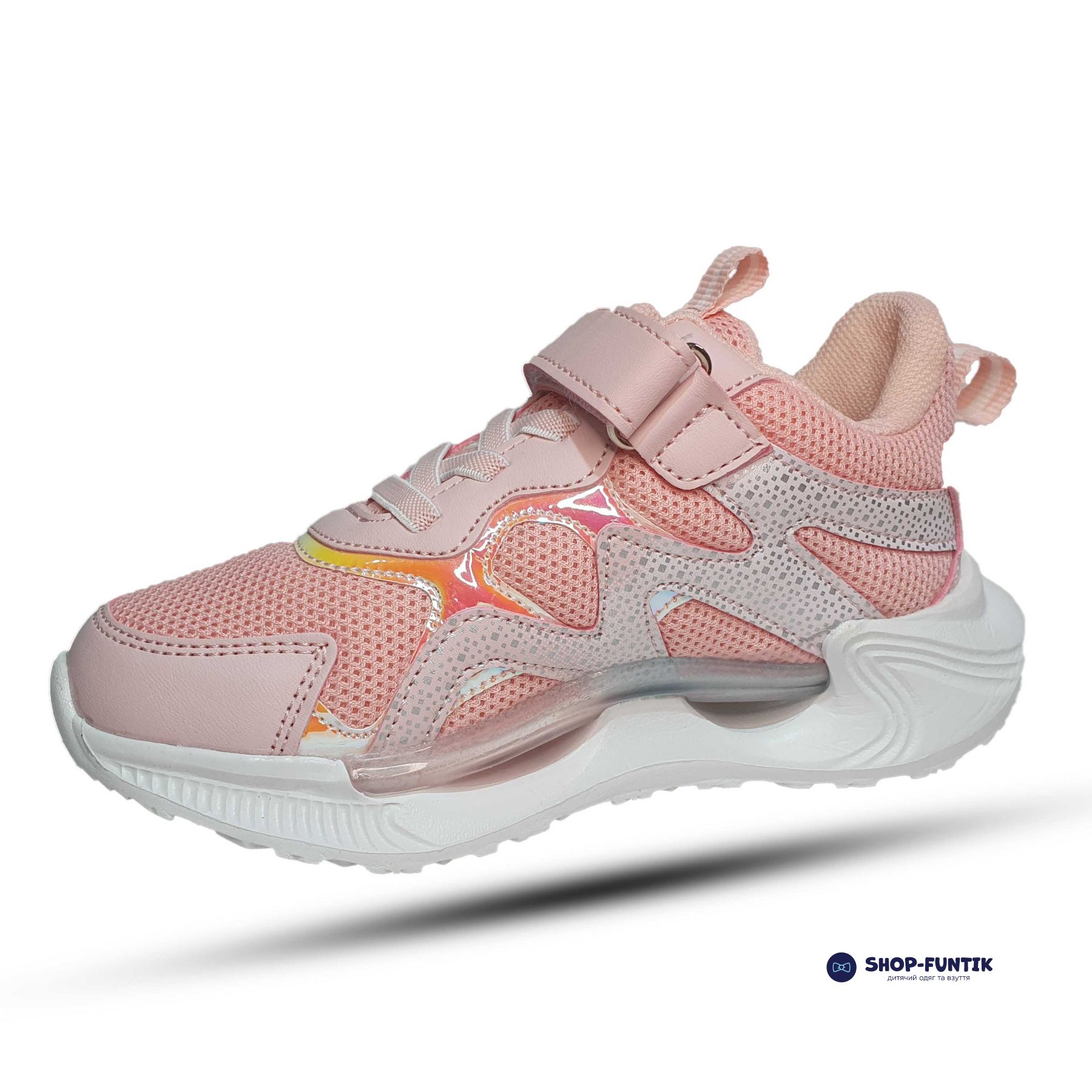 Кроссовки для девочек застегиваются на липучку, поэтому нога надежно фиксируется, а шнурки не мешают во время бега.