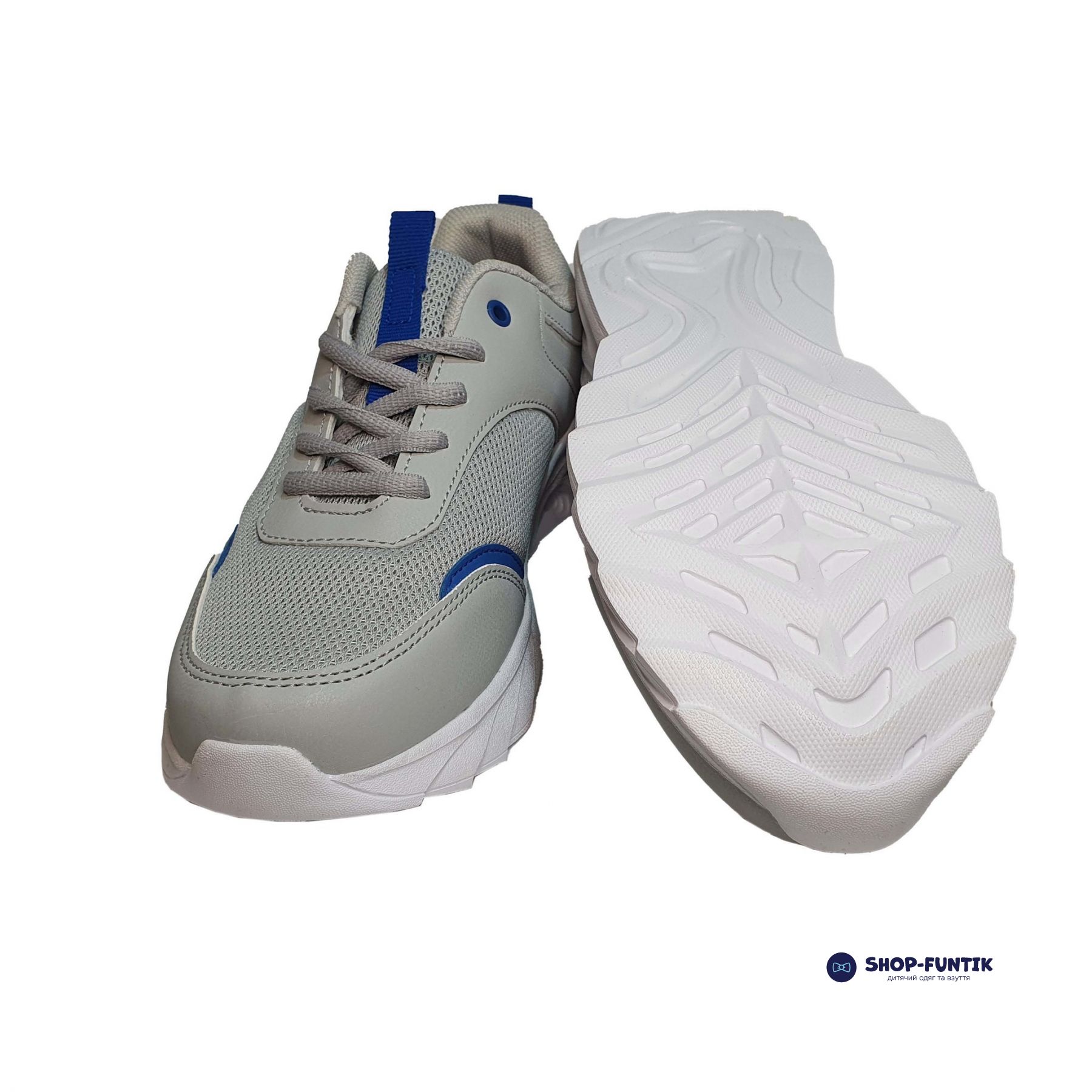 Верх выполнен из текстиля с синими вставками. Несмотря на светлый цвет и тканевую основу, за кроссовками для мальчика будет легко ухаживать. Достаточно просто протирать их влажными салфетками. Можно аккуратно стирать вручную. Завязывается на шнуровку, благодаря чему можно более индивидуально регулировать прилегание изделия к ноге.