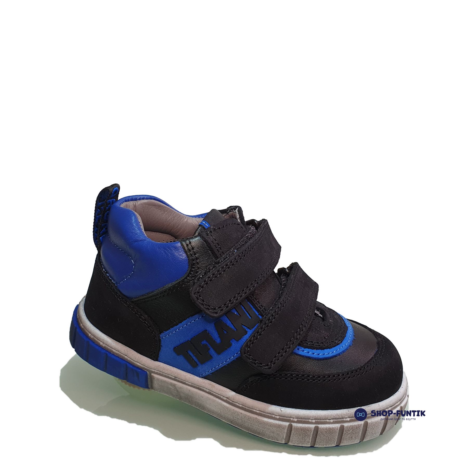 Кроссовки Tiflani черно-синие 18B – это отличное решение для мальчиков на демисезонный период. Эти высокие кроссовки сочетают в себе стиль и практичность, что делает их идеальным выбором для активных детей. Верх кроссовок выполнен из высококачественной кожи с синими вставками, что не только придает им модный вид, но и обеспечивает долговечность и защиту.