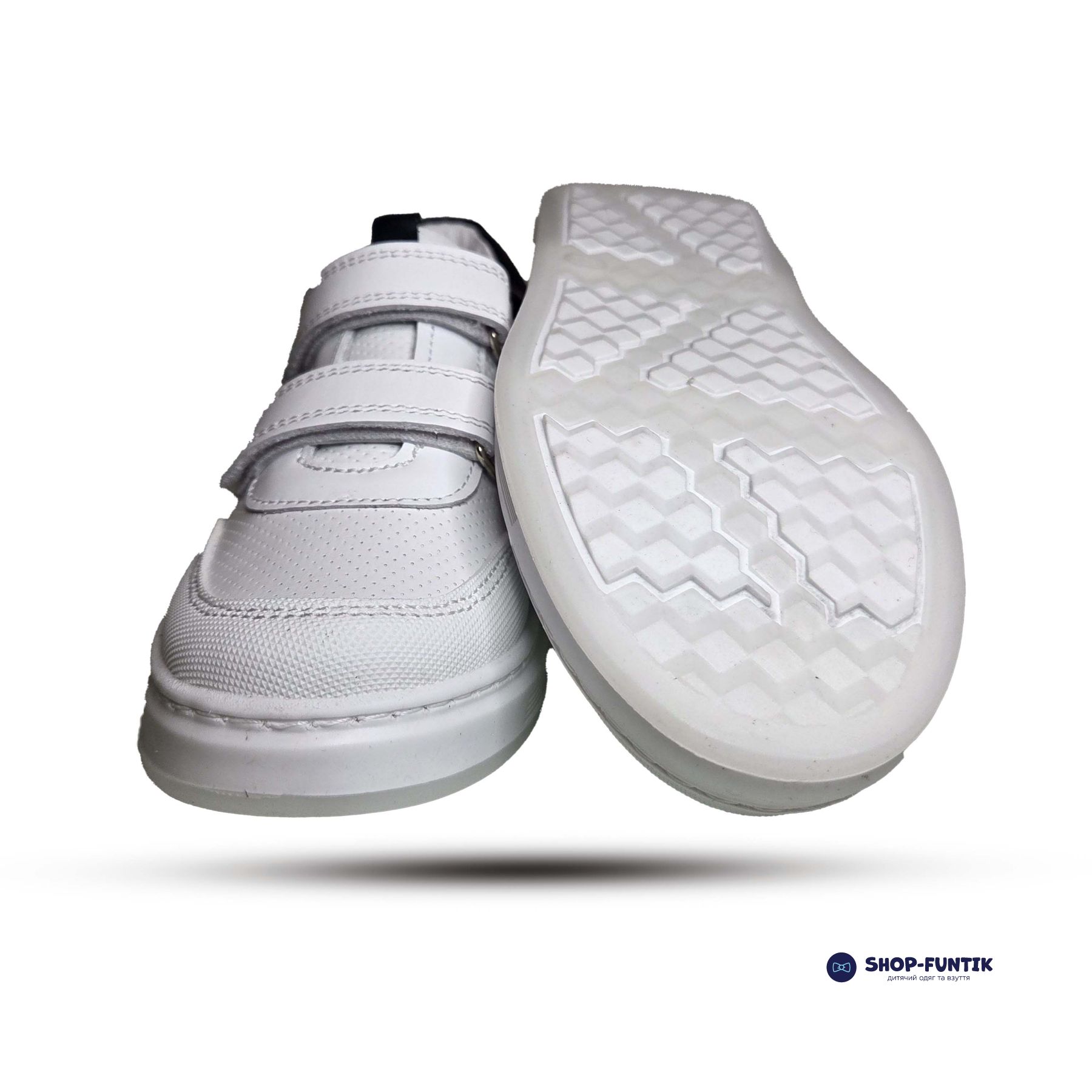 Внутренняя часть полностью выполнена из мягкой белой кожи, которая бережно контактирует с детской стопой, предотвращая натирание и обеспечивая высокий уровень комфорта в течение всего дня. Натуральная подкладка способствует хорошей циркуляции воздуха и помогает поддерживать гигиеничность обуви.