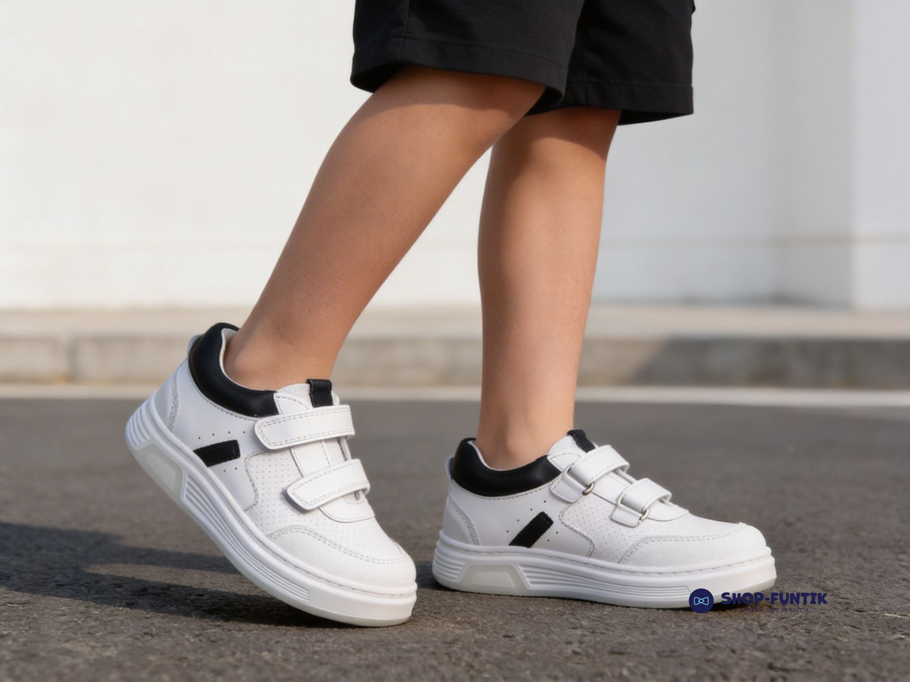 Кроссовки Toddler белые с черными акцентами (модель 7442) — это идеальное сочетание комфорта, практичности и современного дизайна для активных детей. Верх обуви выполнен из натуральной кожи в комбинации с прочной кордурой, что обеспечивает отличную износостойкость, устойчивость к повреждениям и привлекательный внешний вид. Такое сочетание материалов позволяет кроссовкам «дышать», поддерживая оптимальный микроклимат внутри даже при длительном ношении.
