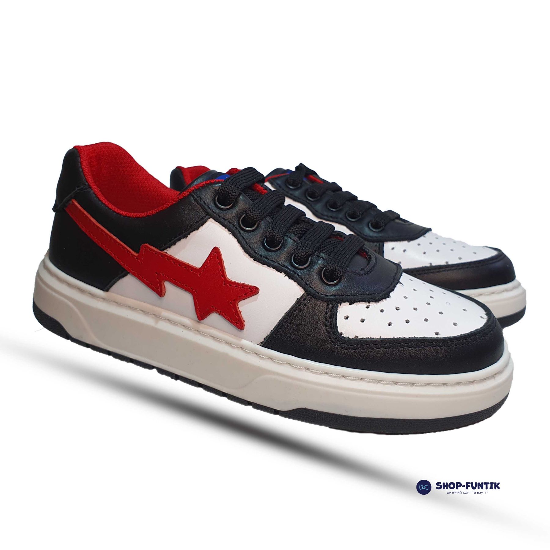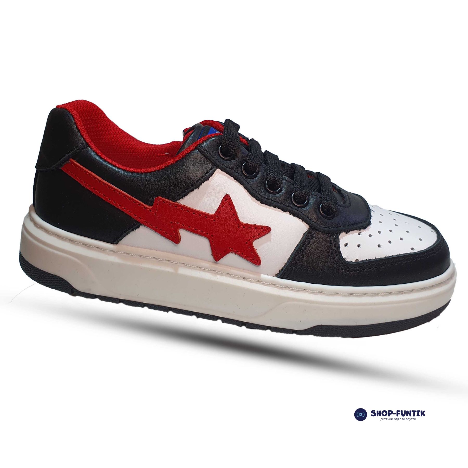 Детские черно-белые кроссовки Tomini сочетают стиль и функциональность. Натуральная кожа и аппликация красной кометы делают их уникальными. Липучка и декоративная шнуровка обеспечивают удобство и надежную фиксацию. Сквозная перфорация улучшает вентиляцию, а прочная подошва гарантирует отличное сцепление. Высокое качество, натуральная кожа, аппликация красной кометы, удобная липучка, декоративная шнуровка, сквозная перфорация. Обеспечьте вашему ребенку стиль и комфорт с черно-белыми кроссовками Tomini! Закажите их сегодня и позвольте вашему ребенку выделяться в этой яркой и удобной обуви. Черно-белые детские кроссовки Tomini из натуральной кожи с красной кометой, сквозной перфорацией и декоративной шнуровкой, произведенные в Турции, обеспечивают комфорт и стиль для активных детей.