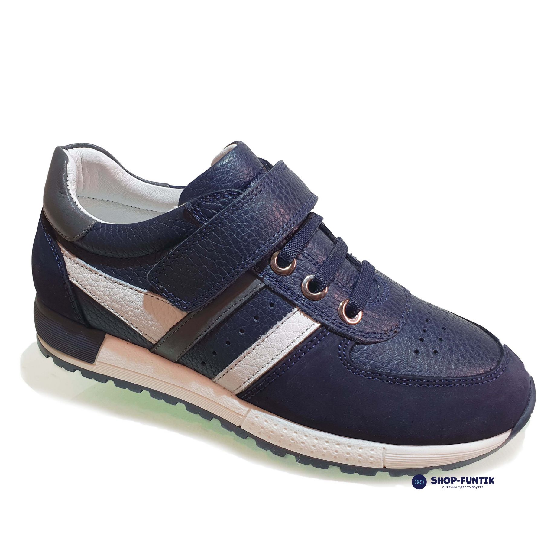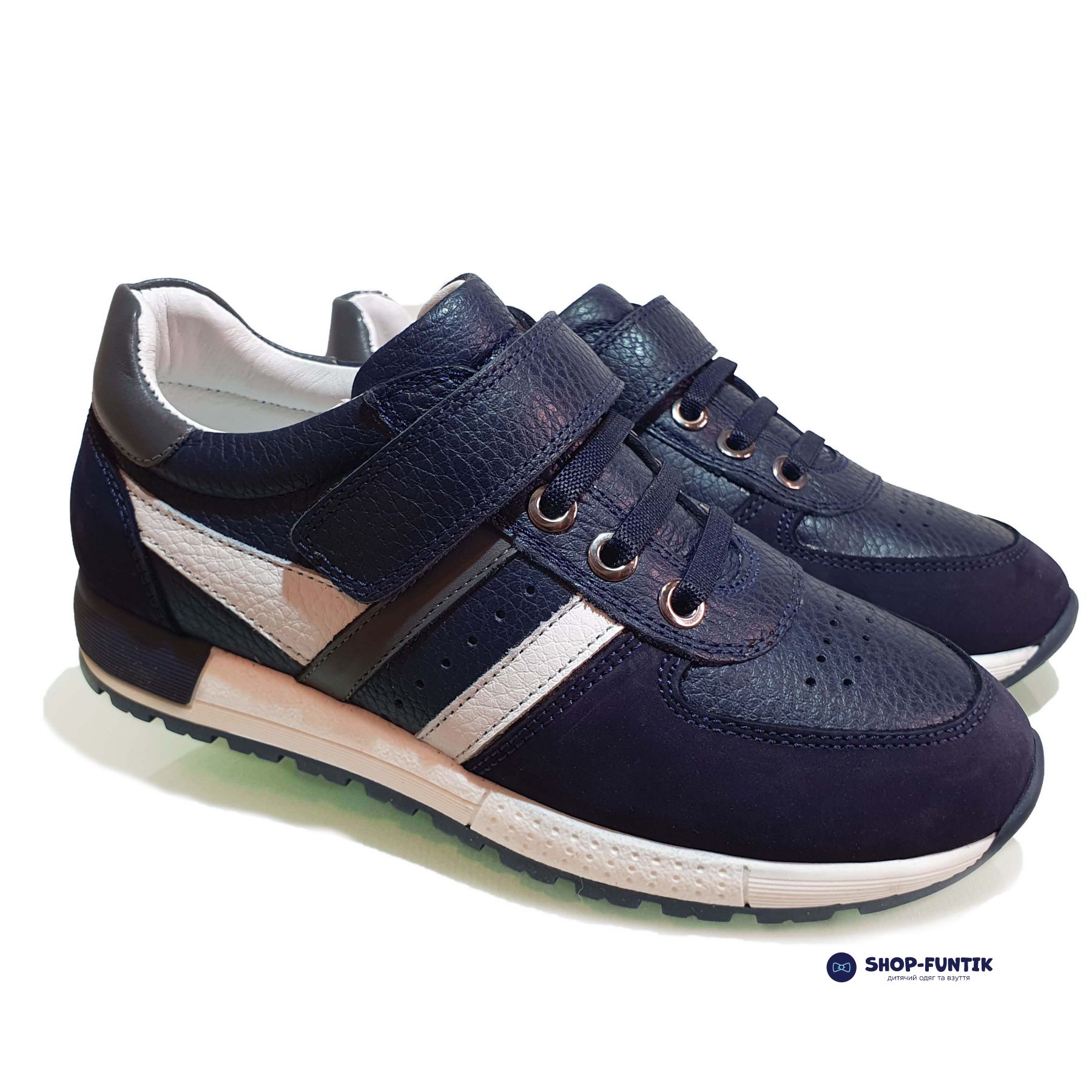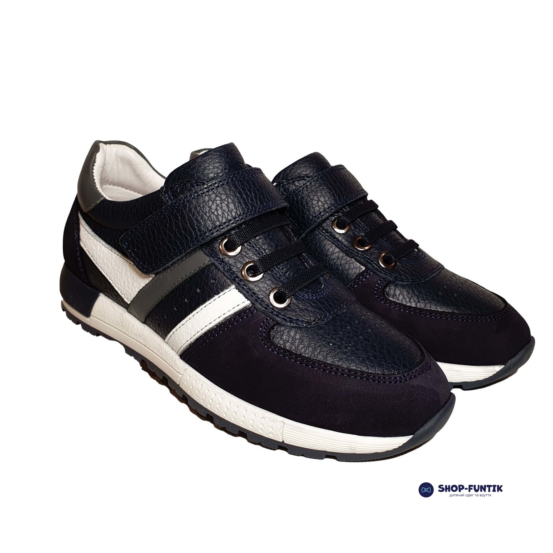 Кроссовки для мальчиков в темно-синем оттенке с белыми вставками — универсальный вариант,