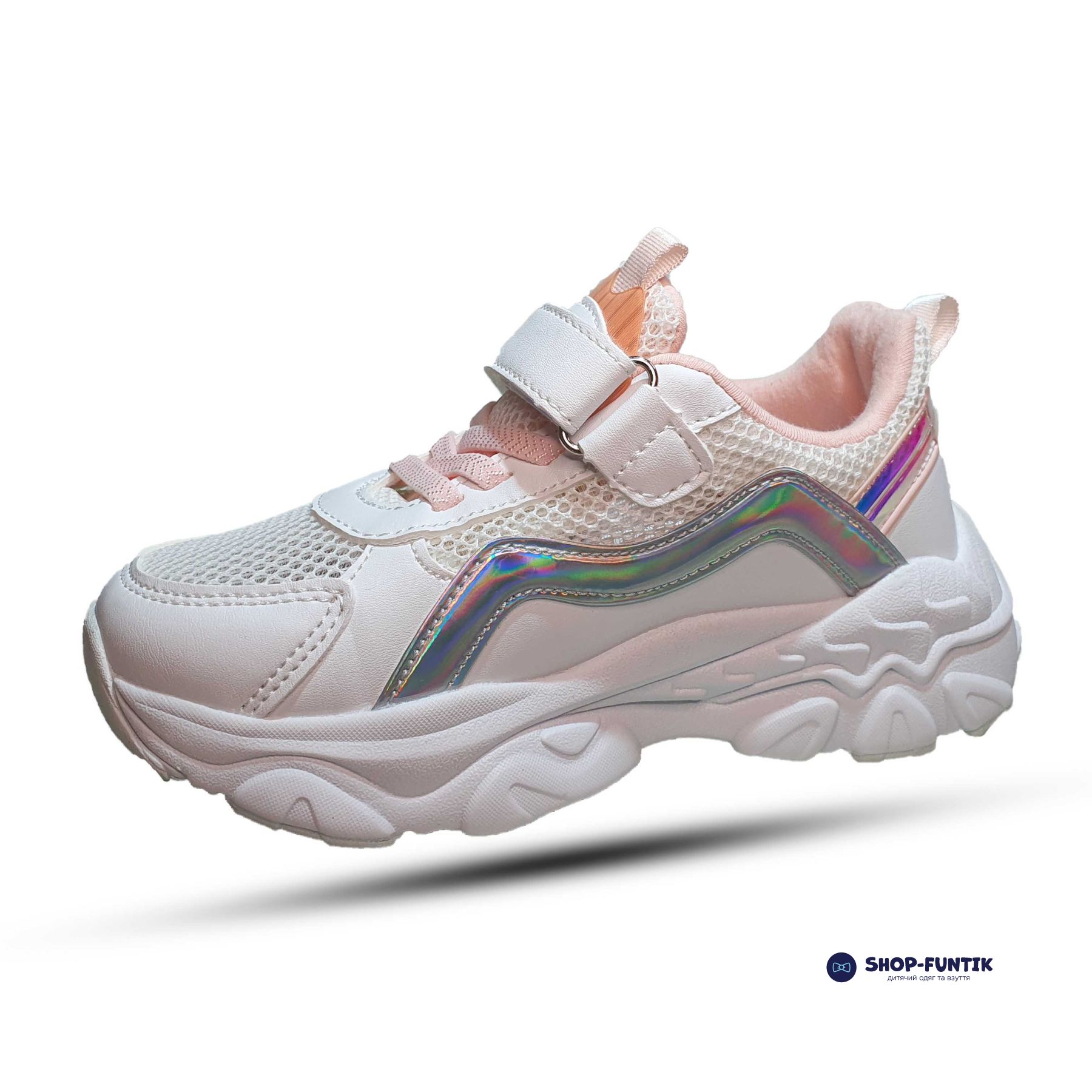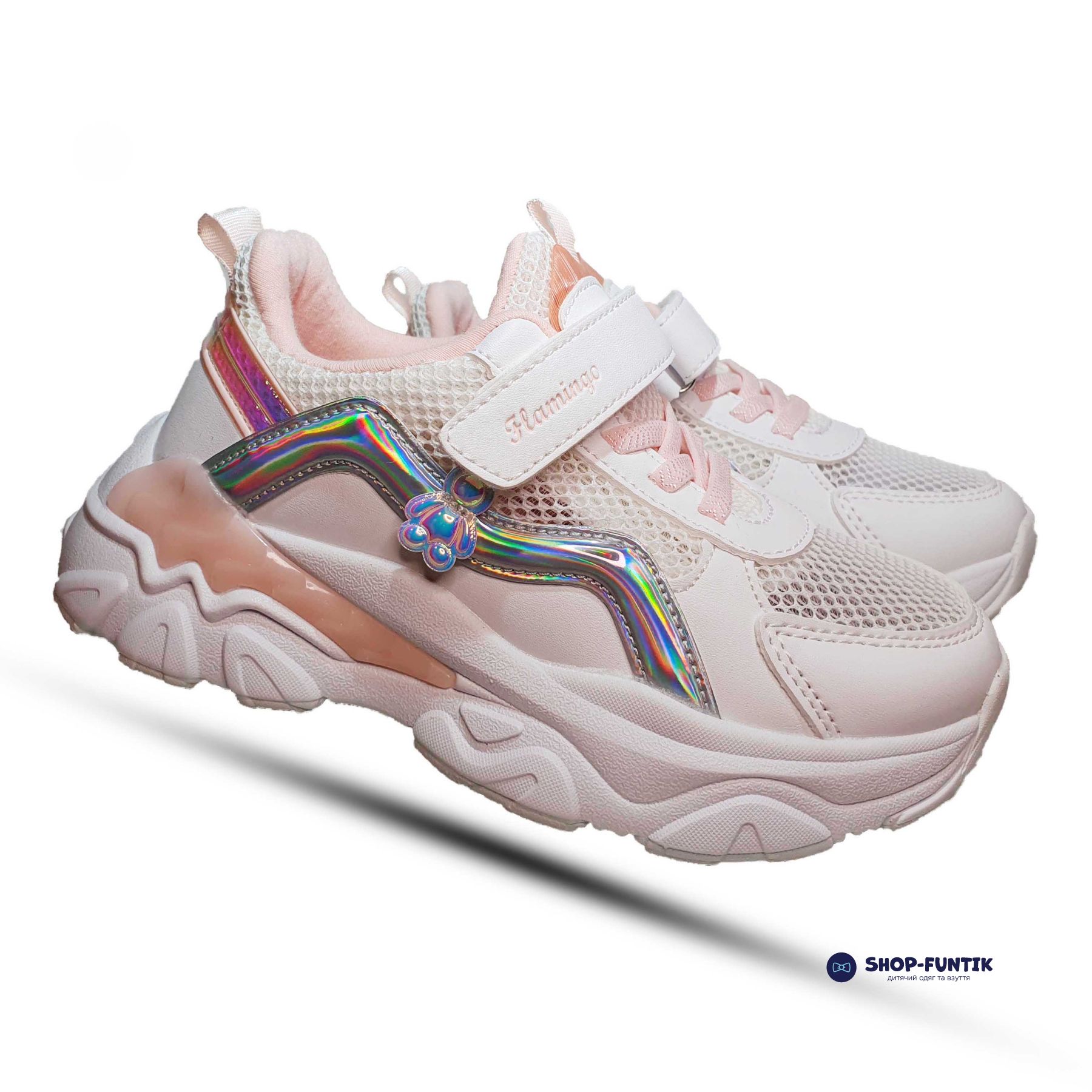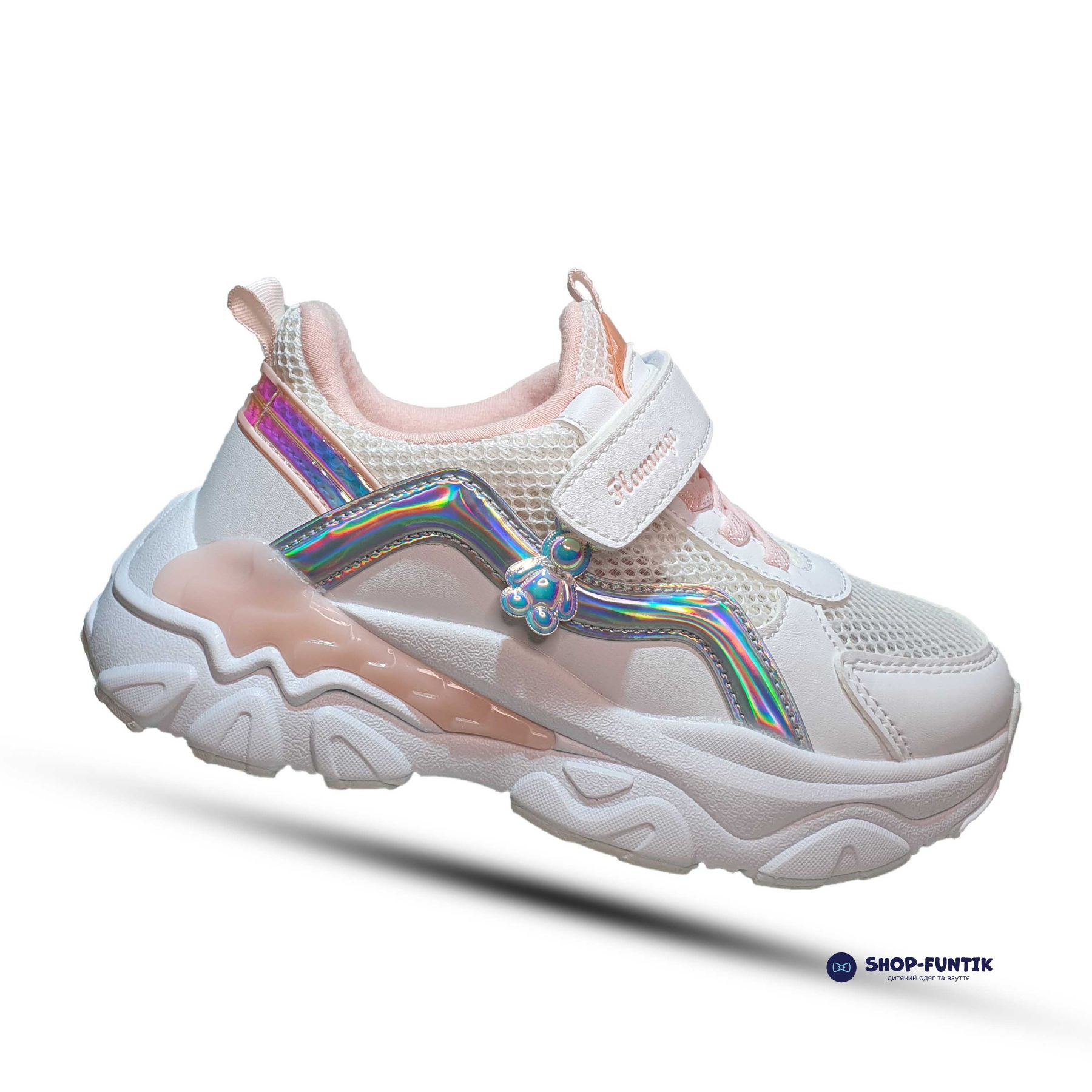 Белая подошва с вставками в виде крыльев розового цвета придает кроссовкам легкость и элегантность. Она обеспечивает отличное сцепление с поверхностью, гибкость и комфорт при каждом шаге, что особенно важно для активных игр и прогулок.