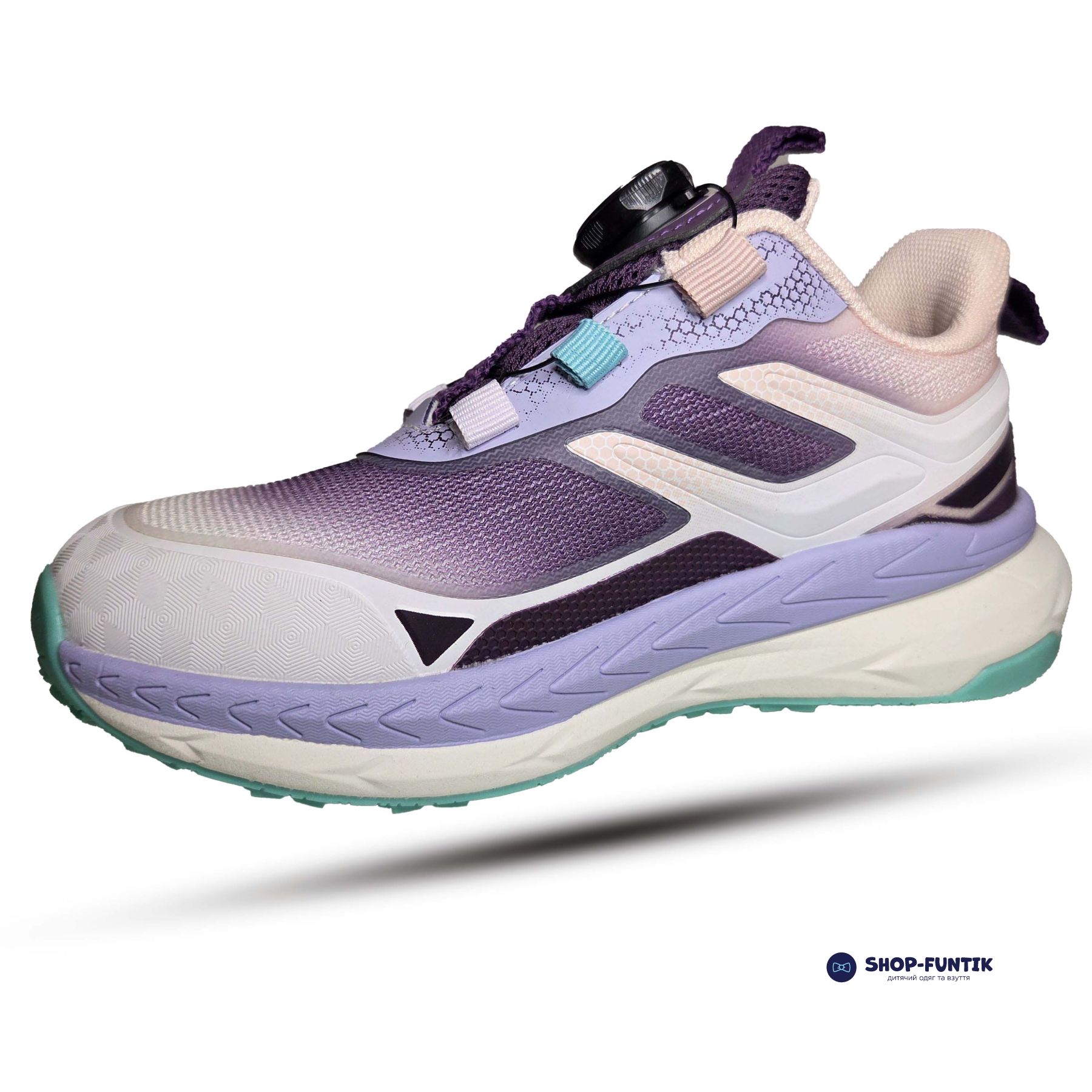 Модель оснащена сучасною роторною застібкою BOA, яка замінює класичні шнурки. Для фіксації достатньо повернути спеціальний ротор — міцний тросик рівномірно затягує взуття та надійно фіксує стопу. Така система дозволяє швидко регулювати посадку, не розв’язується під час руху та значно спрощує процес взування для дітей.