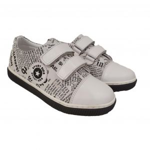 Кроссовки PANDA белого цвета с оригинальным газетным принтом, модель 0060446, предназначены для весенне-летнего сезона и идеально подойдут как для мальчиков, так и для девочек. Эти унисекс кроссовки не только стильные, но и практичные. Боковые стороны изделия дополнительно украшены круглыми декоративными накладками, что придает обуви особый шарм и индивидуальность.