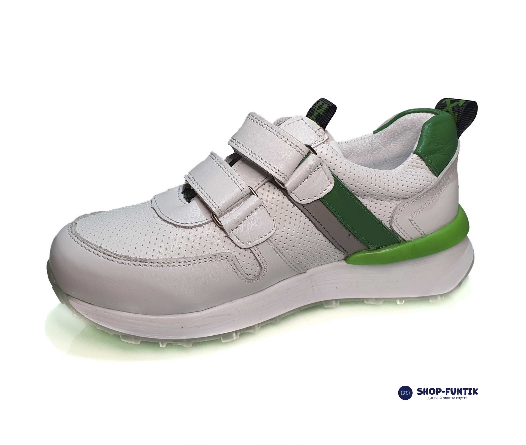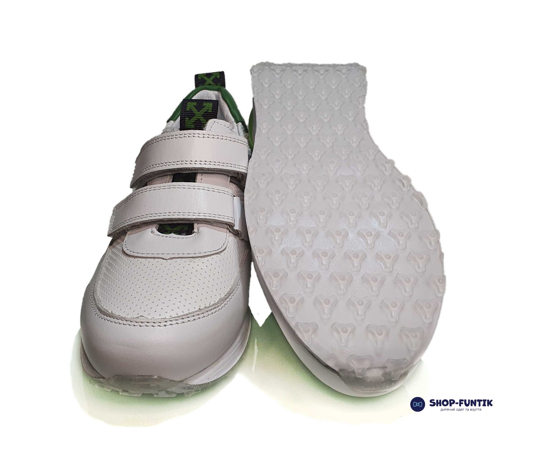 - Подошва белого цвета изготовлена из лёгкого и прочного материала, обеспечивающего хорошую амортизацию и поддержку при ходьбе и активных играх. Белый цвет подошвы добавляет кроссовкам стильный и чистый вид.