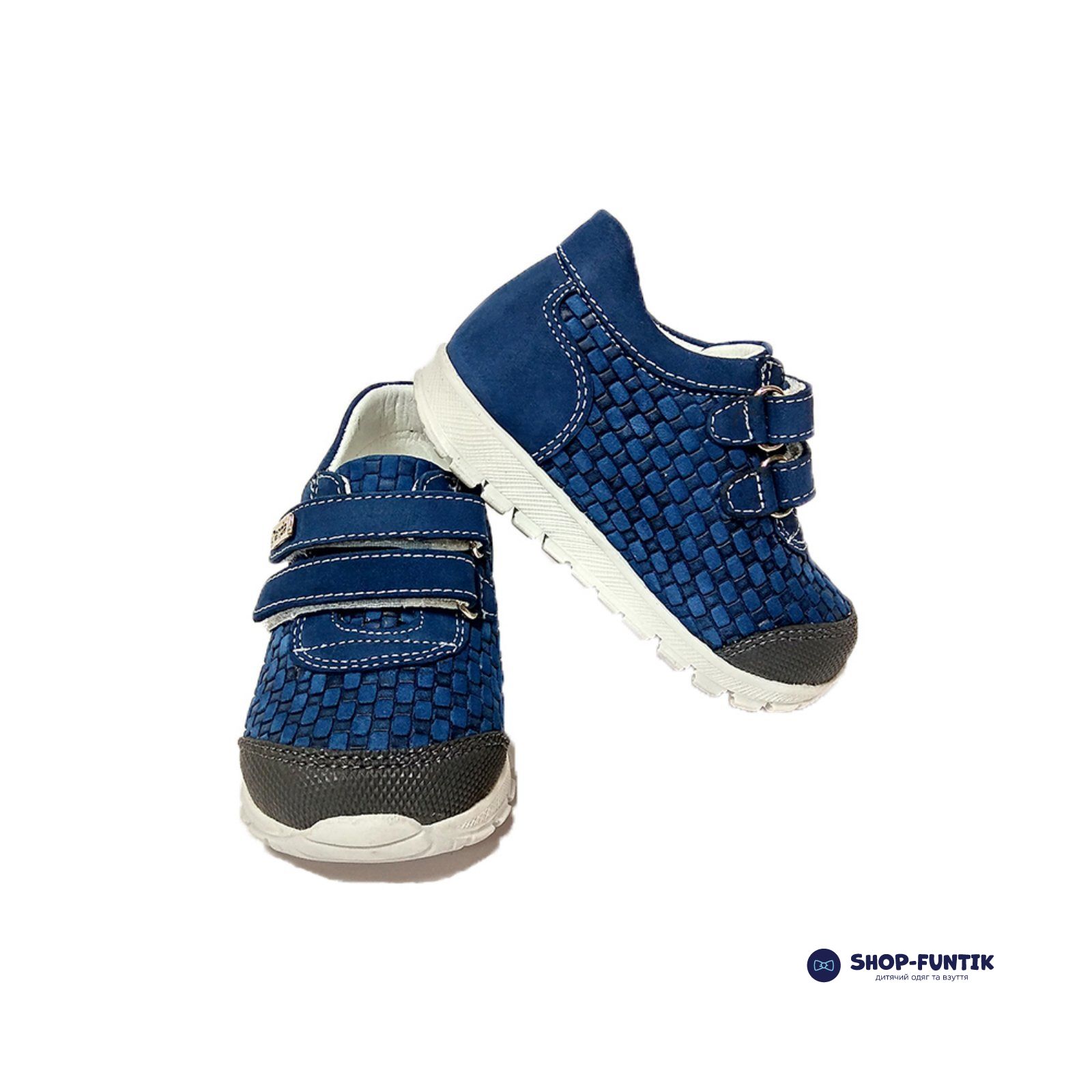Основной цвет изделия – синий. Подошва белая. Есть дополнительные накладки на