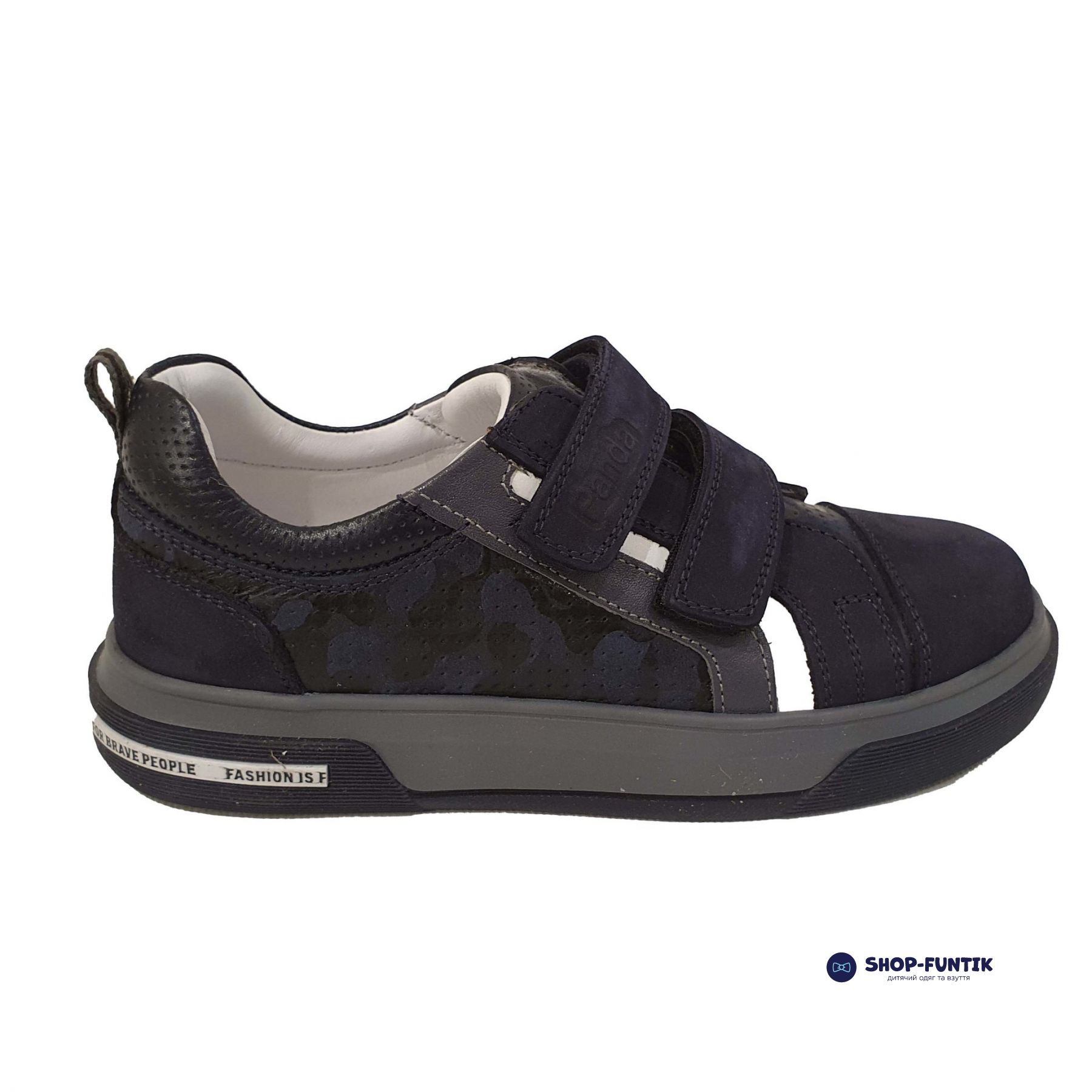 В качестве главного дизайнерского элемента турецкий производитель Panda представил принт в виде серой и белой полоски. Обувь для мальчика сделана из натуральной кожи. Хорошая воздухопроницаемость и терморегуляция делают её оптимальной для занятий спортом. Также этому способствует не тонкая, но мягкая подошва, которая полностью повторяет изгибы ноги ребёнка.
