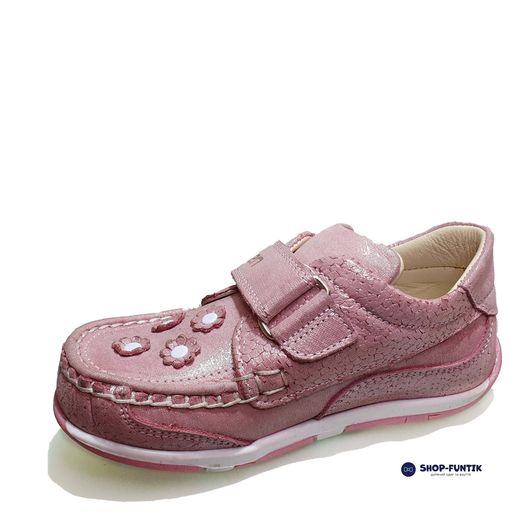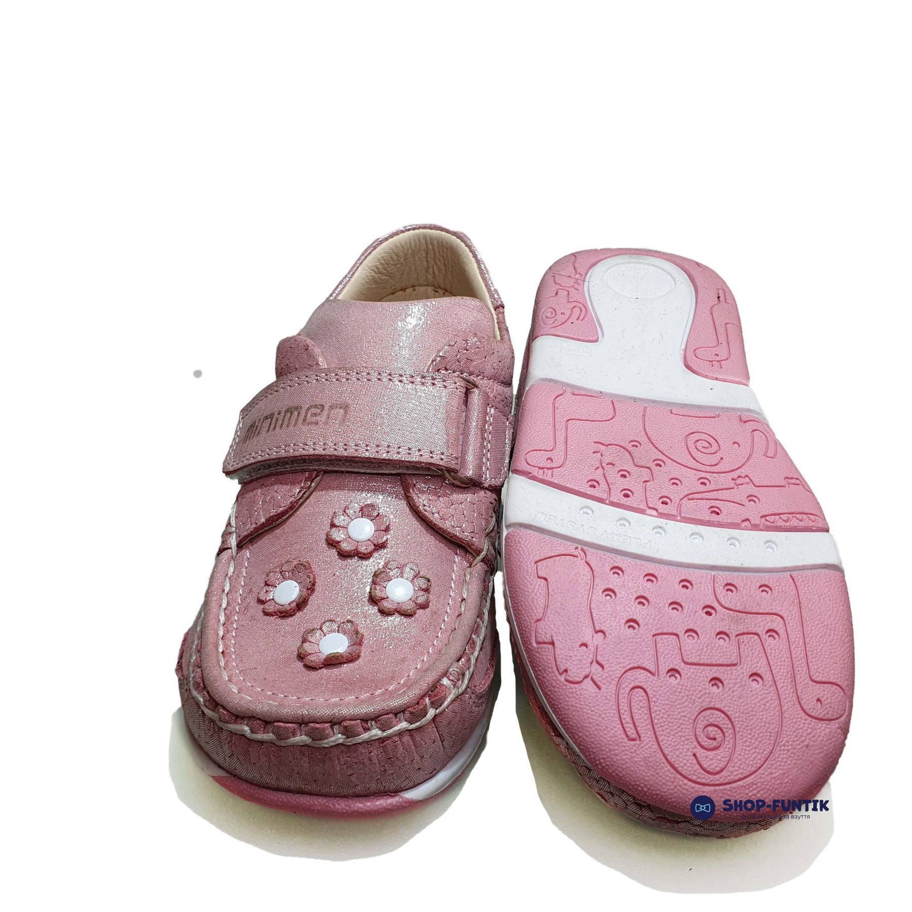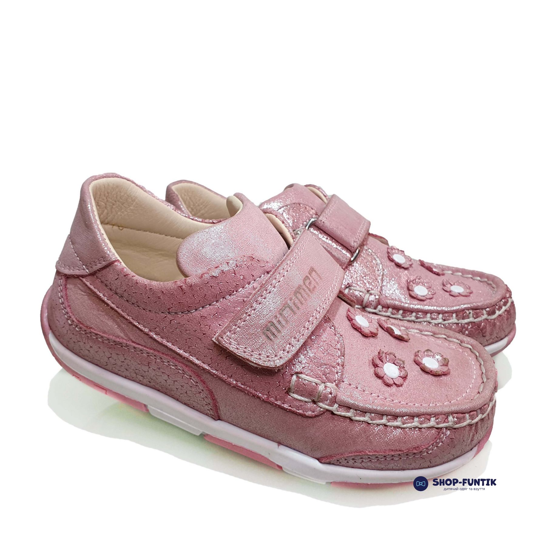 Светлая и нежная модель мокасинов Minimen для девочки с Пудровыми цветочками идеально