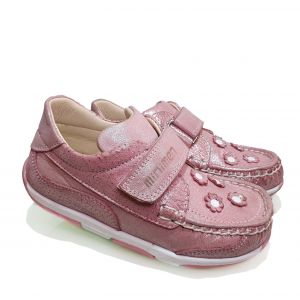 Мокасины Minimen пудровые с цветочками 04-061