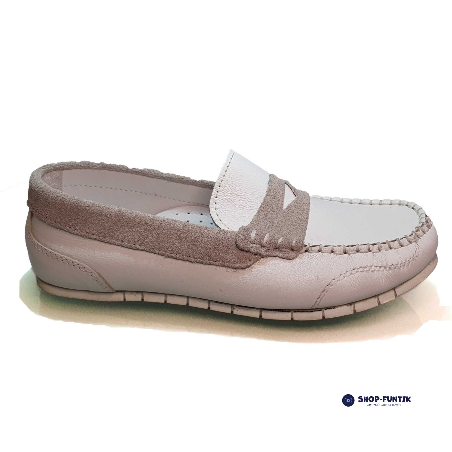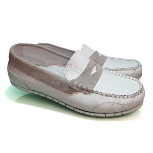 Мокасины Minimen белые с светло-серыми вставками 902