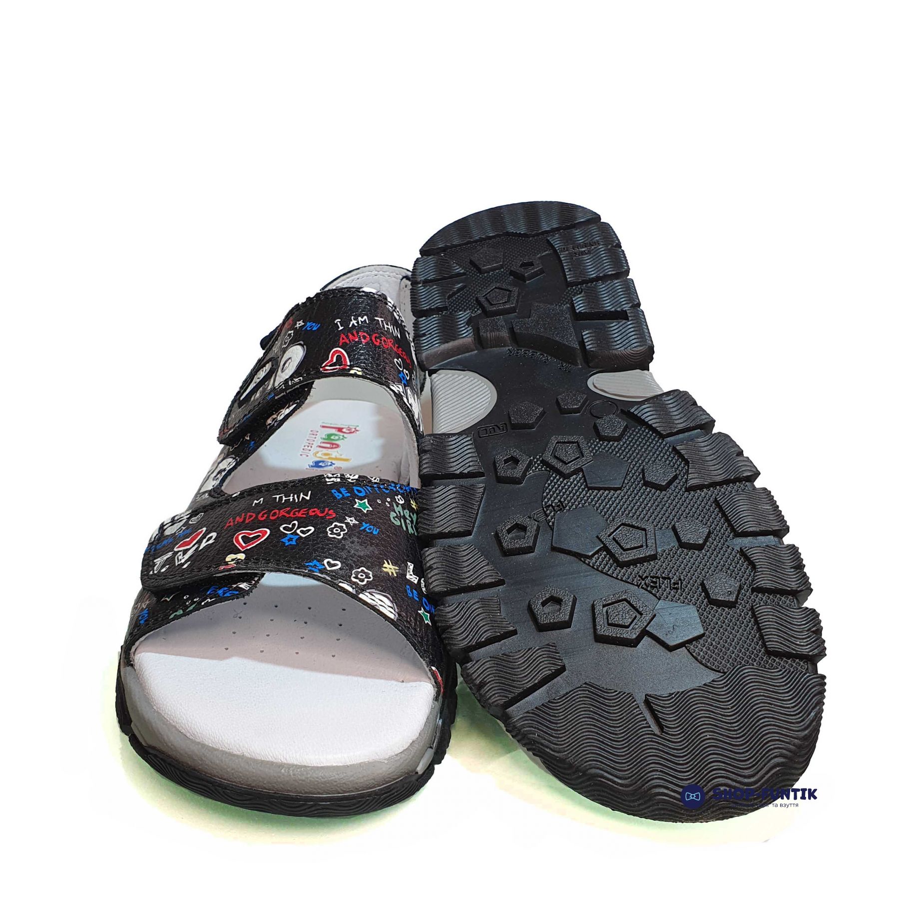 Сандалии Panda черные с принтом 011