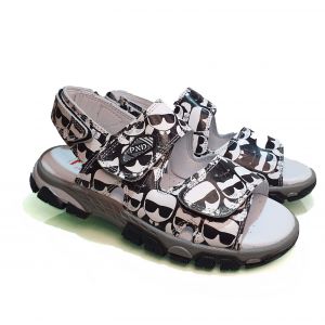 Верх сандалий выполнен из высококачественной кожи с принтом, который придает обуви модный и оригинальный вид. Черно-белая цветовая схема делает их универсальными и легко сочетаемыми с различными нарядами. Открытые задник и носок обеспечивают отличную вентиляцию и свободу движений, что особенно важно в жаркие дни.