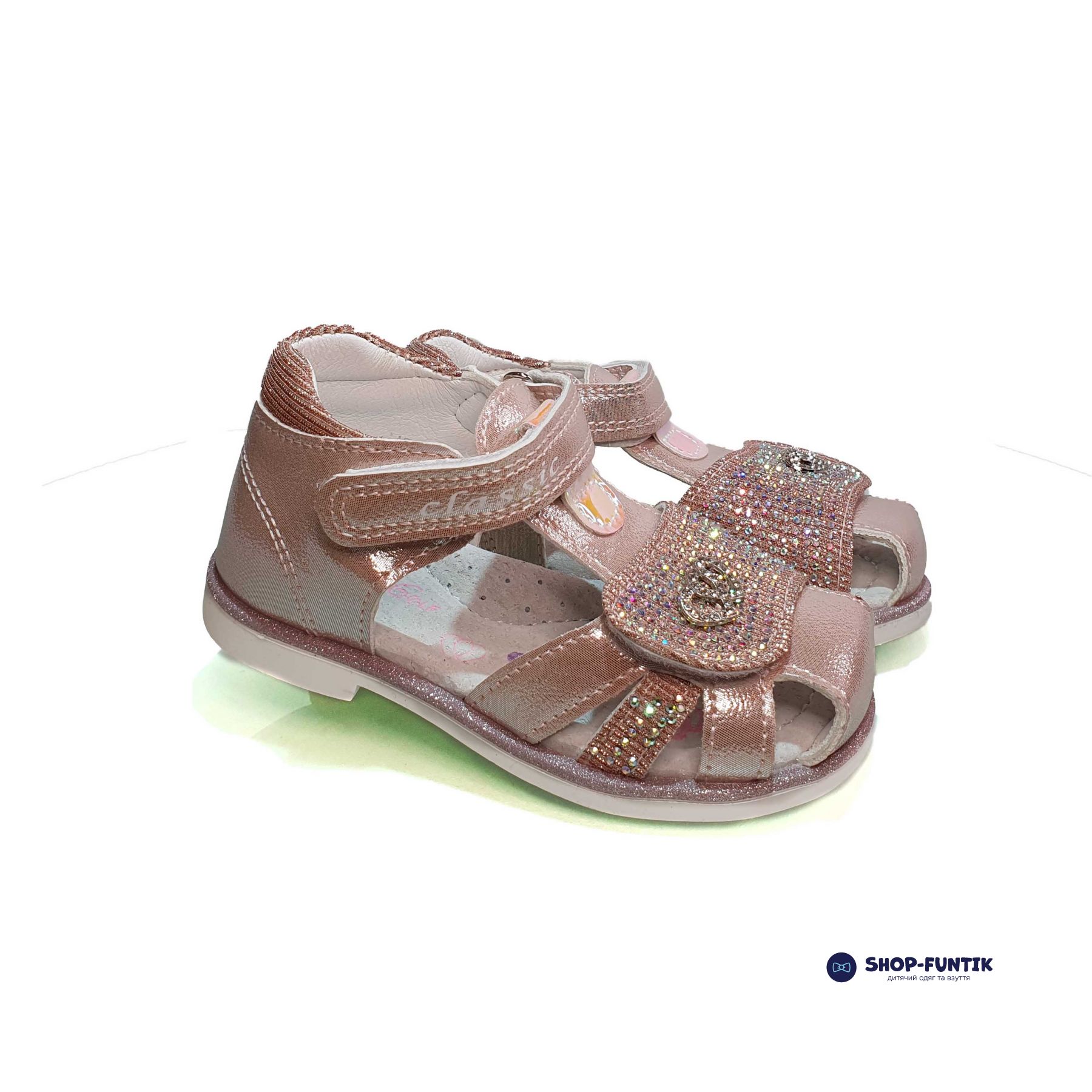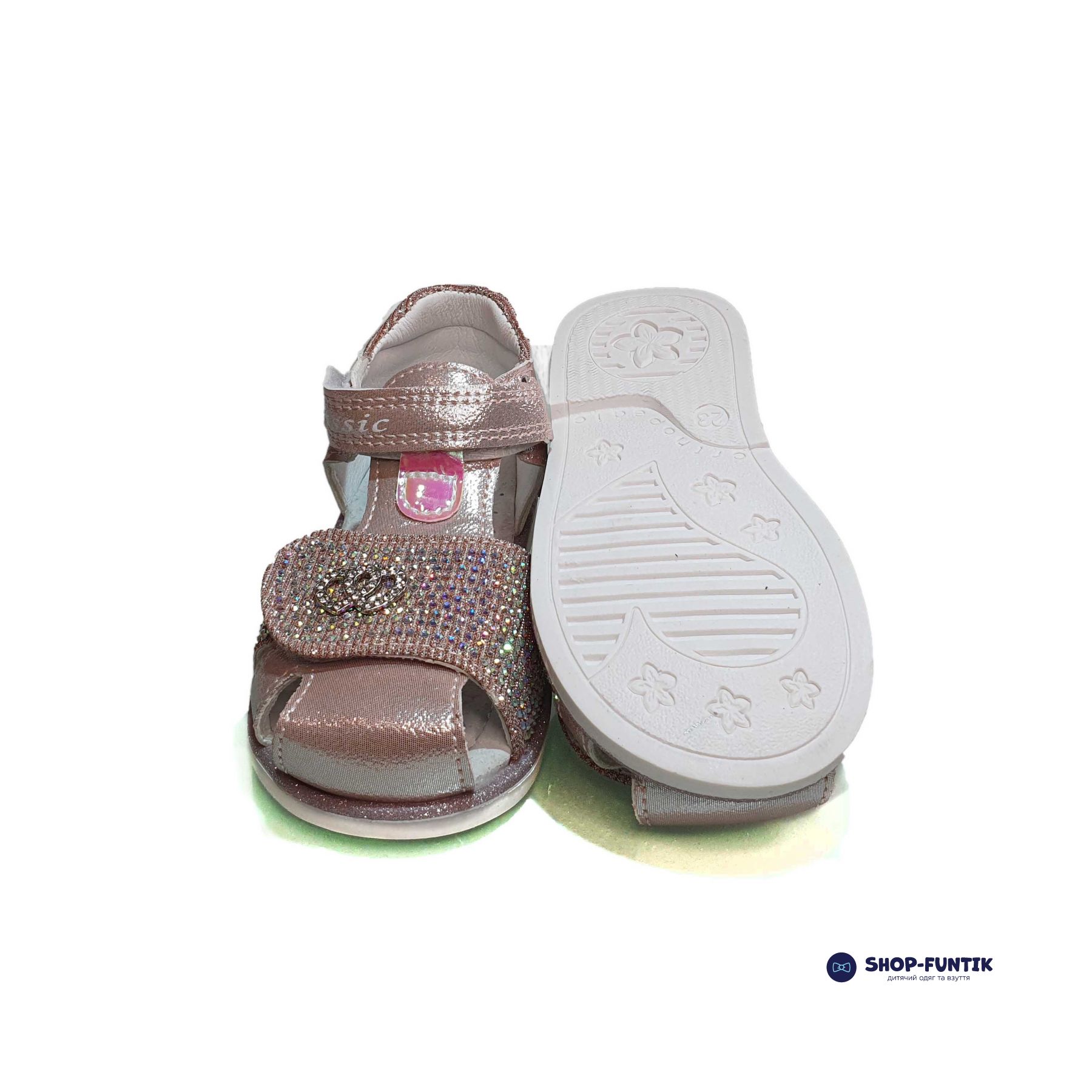 Сандалии оснащены двумя липучками, что обеспечивает удобство при надевании и снятии обуви, а также позволяет точно регулировать полноту для идеальной посадки на ножке. Липучки не только функциональны, но и украшены стразами, добавляя сандалиям особый шарм и блеск. Стразы придают обуви элегантный и праздничный вид, что делает их идеальными для различных летних мероприятий.
