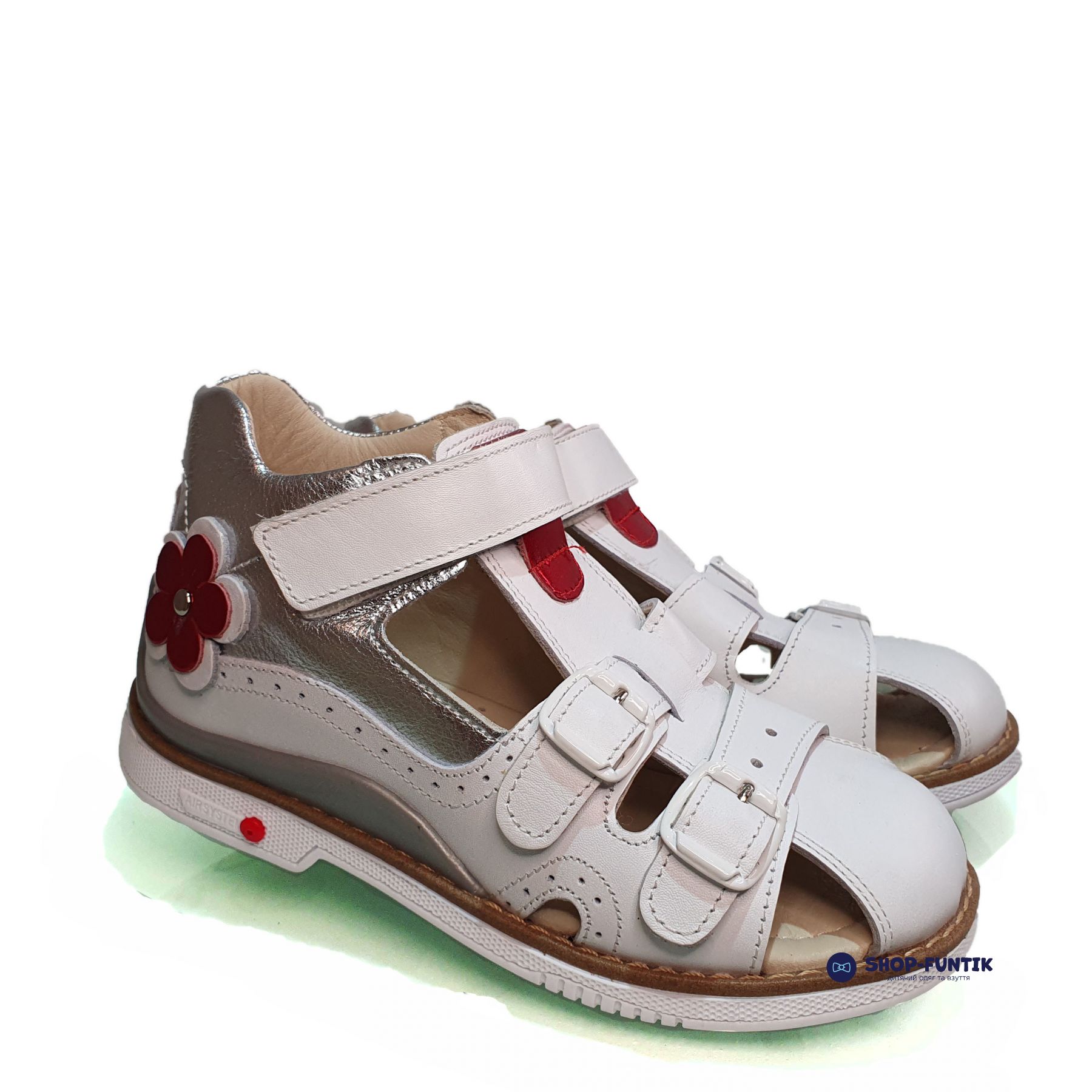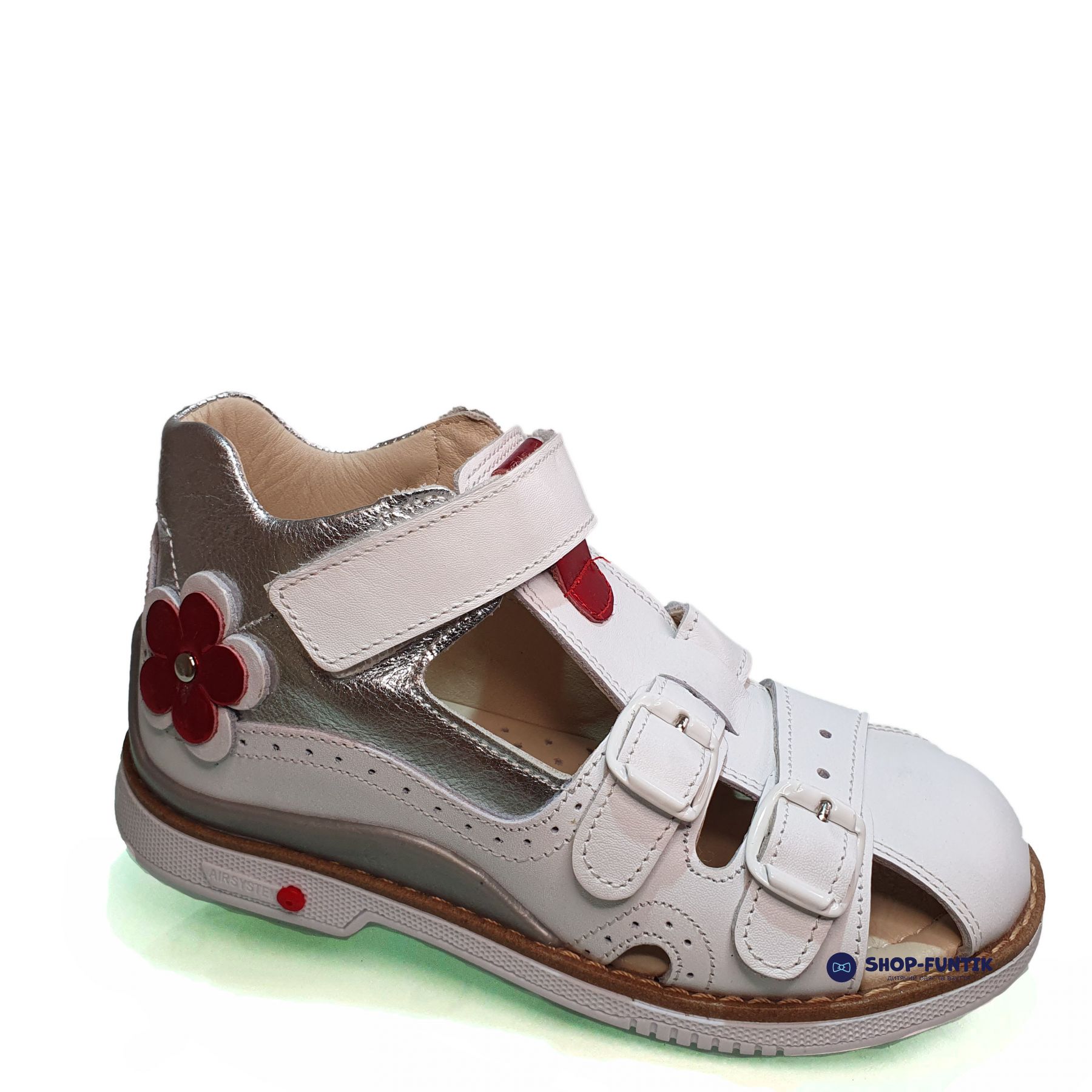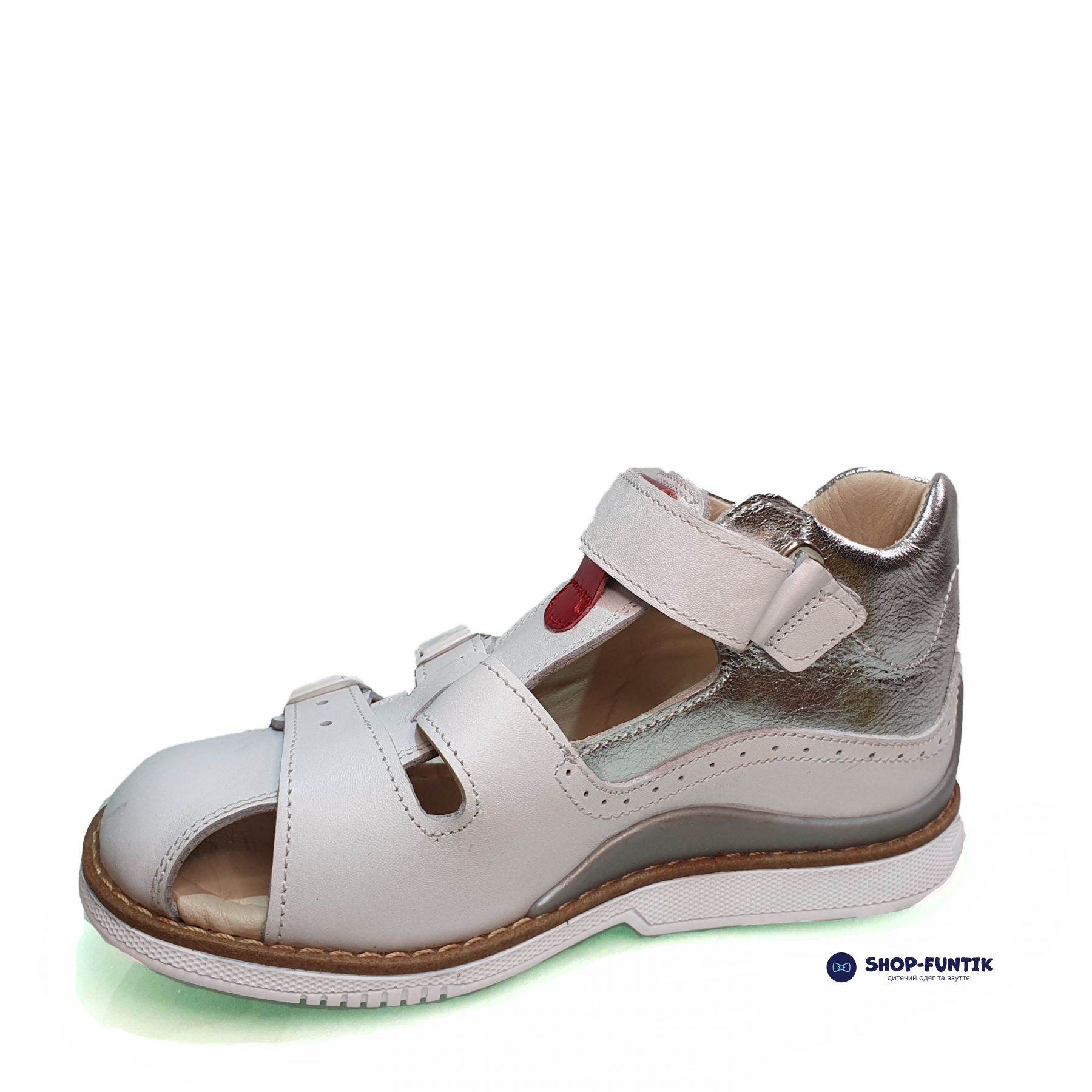 Подошва сандалий белого цвета оснащена каблуком Томаса, который рекомендован ортопедами. Этот тип каблука способствует правильному формированию стопы и обеспечивает дополнительную поддержку свода стопы. Высокая подошва и правильное распределение нагрузки на стопу делают эти сандалии идеальными для активных игр и длительных прогулок.
