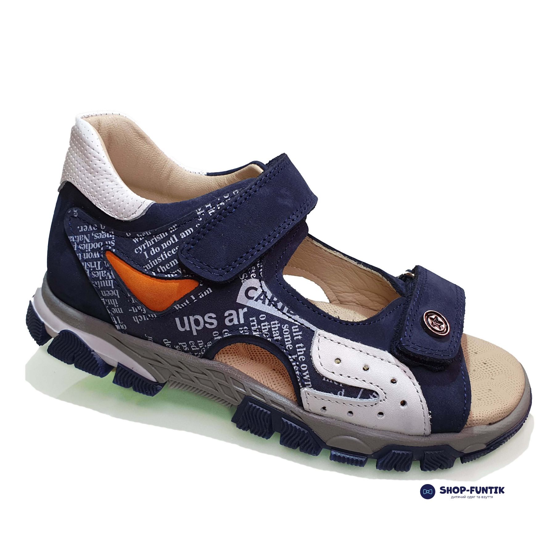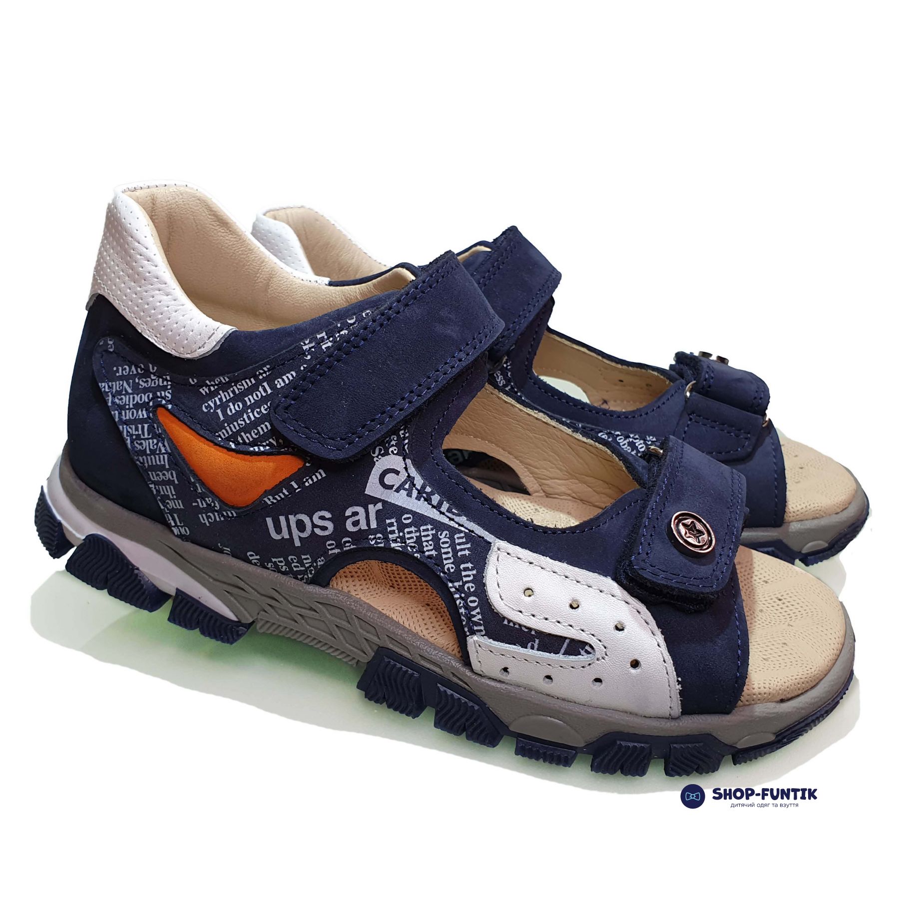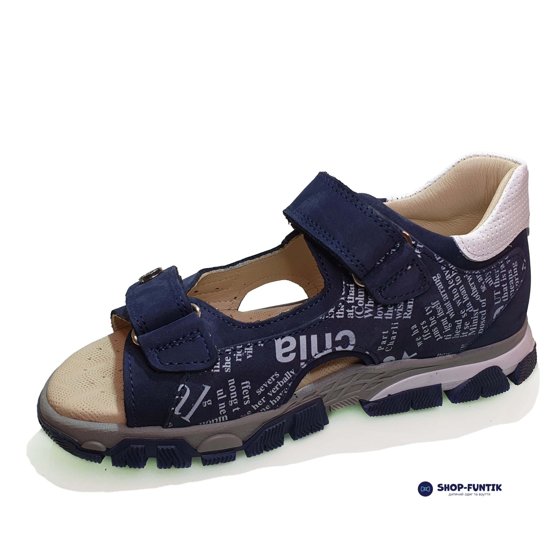Сандалии Panda темно-синие с газетным принтом 002.012